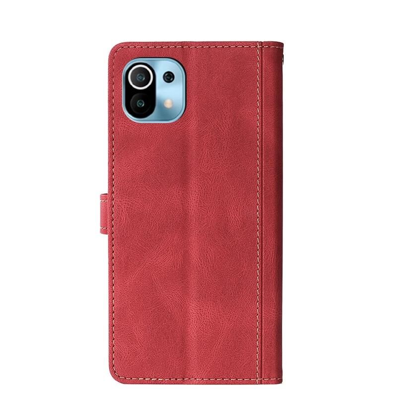 Για Xiaomi Mi 11 Stitching δέρμα αίσθηση μαγνητική πόρπη οριζόντια Flip PU δέρμα υπόθεση με κάτοχο & υποδοχές καρτών & πορτοφόλι (κόκκινο)
