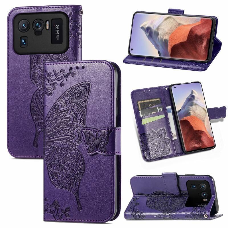 Για Xiaomi Mi 11 Ultra πεταλούδα αγάπη λουλούδια ανάγλυφο οριζόντια Flip δερμάτινη θήκη με κάτοχο & υποδοχές για κάρτες & πορτοφόλι & κορδόνι (σκούρο μωβ)
