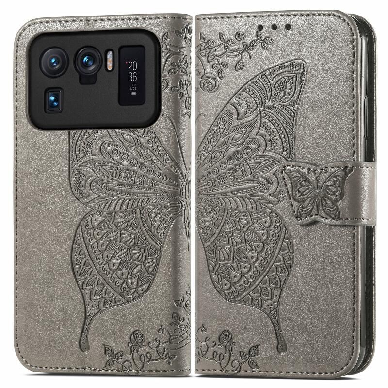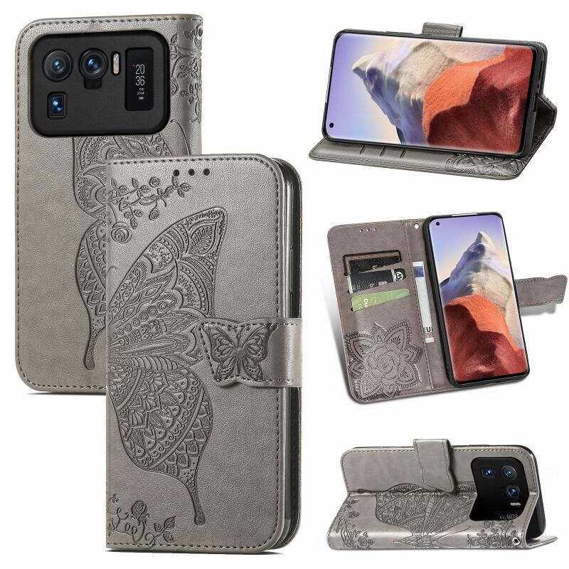 Για Xiaomi Mi 11 Ultra πεταλούδα αγάπη λουλούδια ανάγλυφο οριζόντια Flip δερμάτινη θήκη με κάτοχο & υποδοχές για κάρτες & πορτοφόλι & κορδόνι (Γκρι)