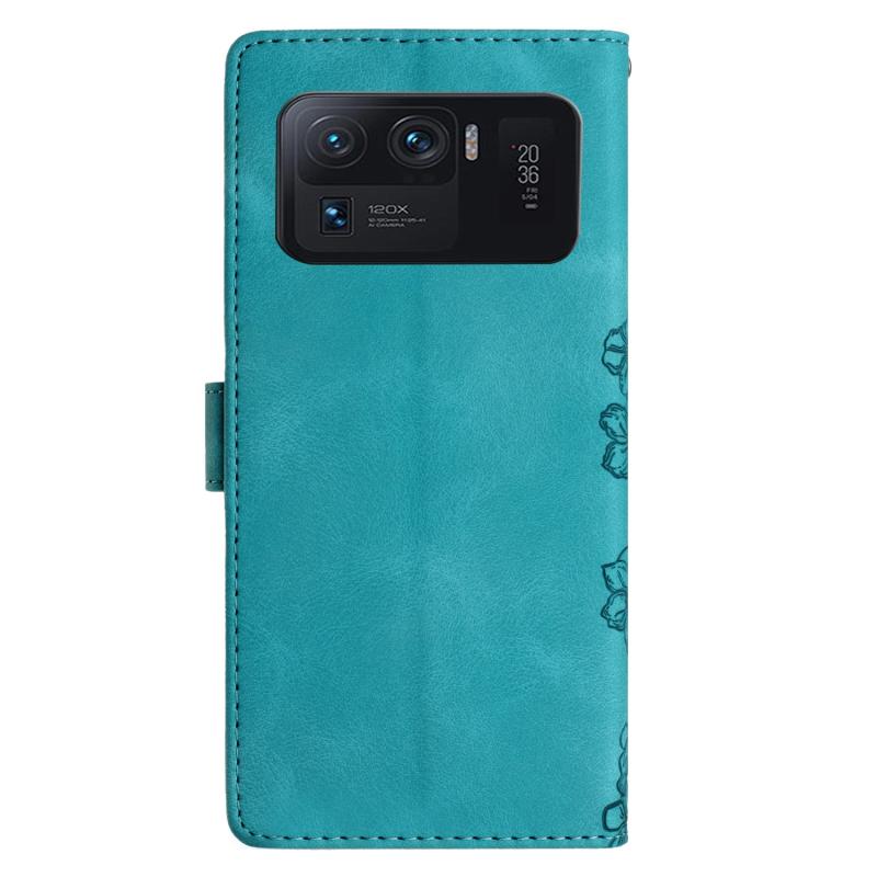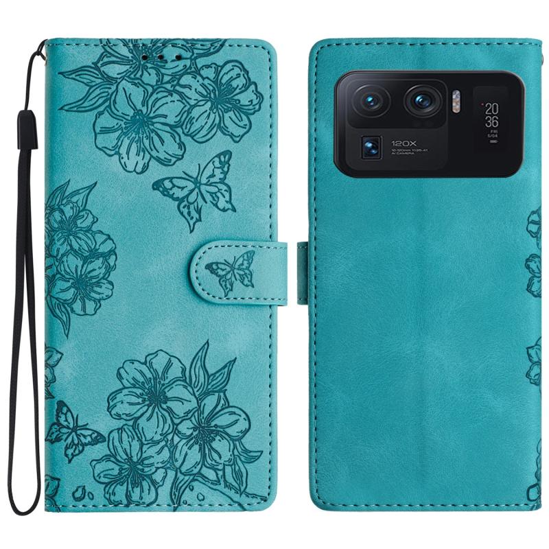 For Xiaomi Mi 11 Ultra Cherry Blossom Butterfly Skin Feel Embossed PU Phone Case(Green)