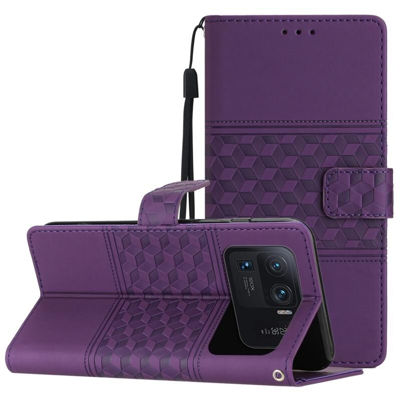 Για Xiaomi Mi 11 Ultra Diamond ανάγλυφο δέρμα αίσθηση δερμάτινη θήκη τηλεφώνου με κορδόνι (μωβ)