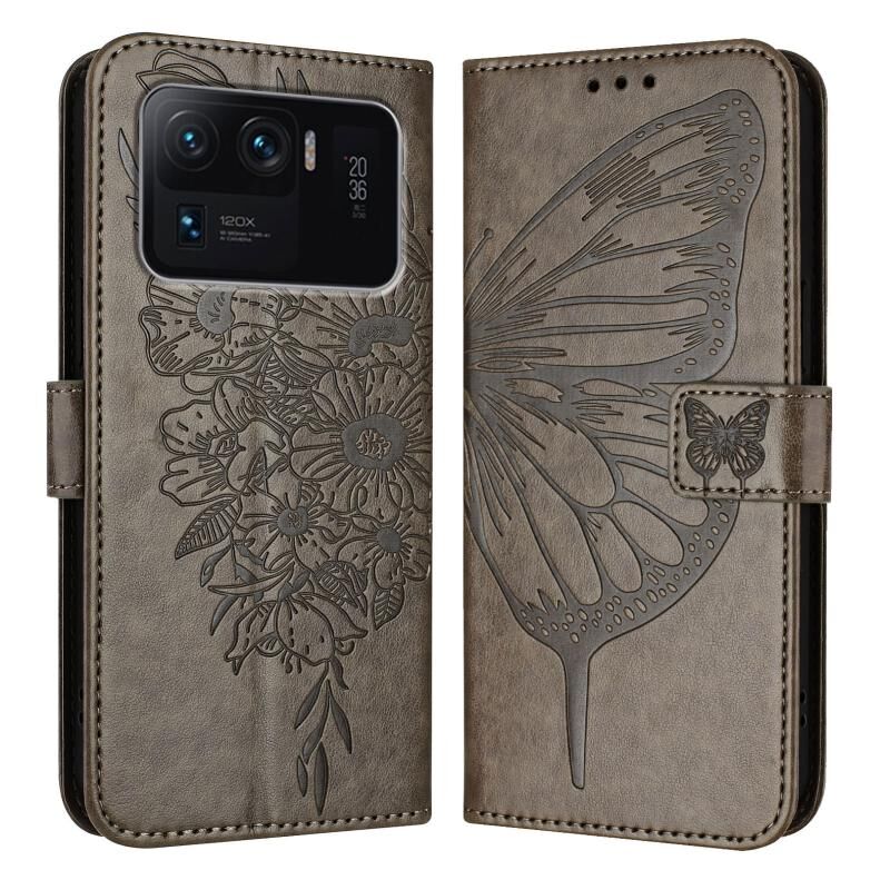 Για Xiaomi Mi 11 Ultra ανάγλυφη πεταλούδα δερμάτινη θήκη τηλεφώνου (Γκρι)