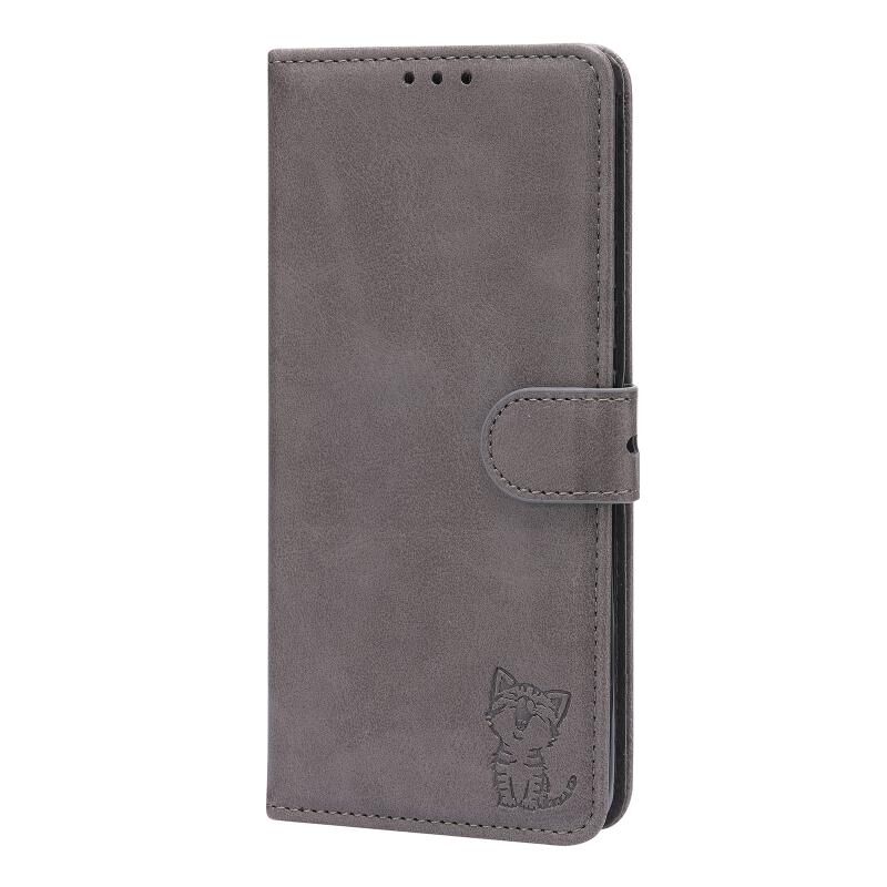 Για Xiaomi Mi 11 Ultra Ανάγλυφο Happy Cat Pattern Οριζόντια Flip δερμάτινη θήκη με θήκη & υποδοχές για κάρτες & πορτοφόλι (Γκρι)