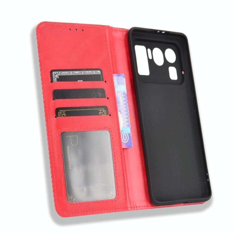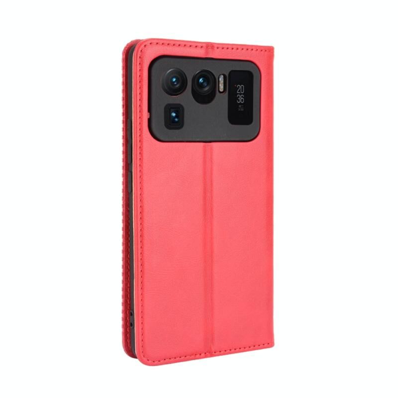 Για Xiaomi Mi 11 Ultra Μαγνητική πόρπη Ρετρό τρελό άλογο υφή οριζόντια Flip δερμάτινη θήκη με θήκη & υποδοχές καρτών & πλαίσιο φωτογραφιών (κόκκινο)