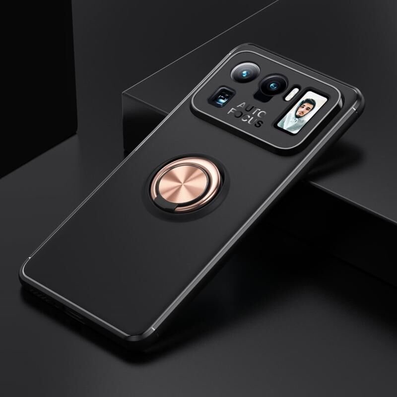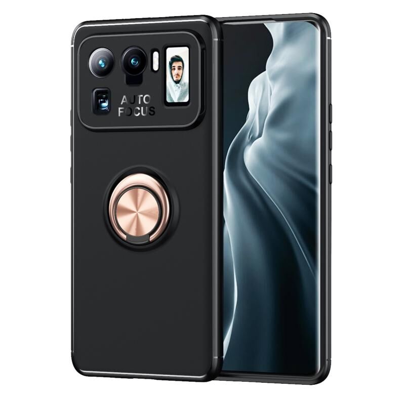 Για Xiaomi Mi 11 Ultra μεταλλικό δαχτυλίδι κάτοχος 360 μοίρες περιστρεφόμενη θήκη TPU (μαύρο + ροζ χρυσό)