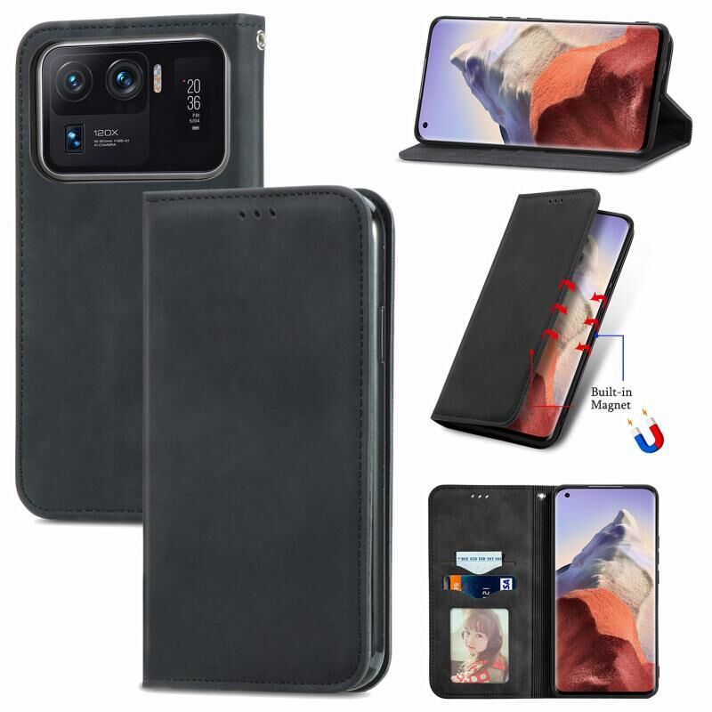 Για Xiaomi Mi 11 Ultra Retro Skin Feel Μαγνητική θήκη τηλεφώνου από δέρμα Flip (Μαύρο)