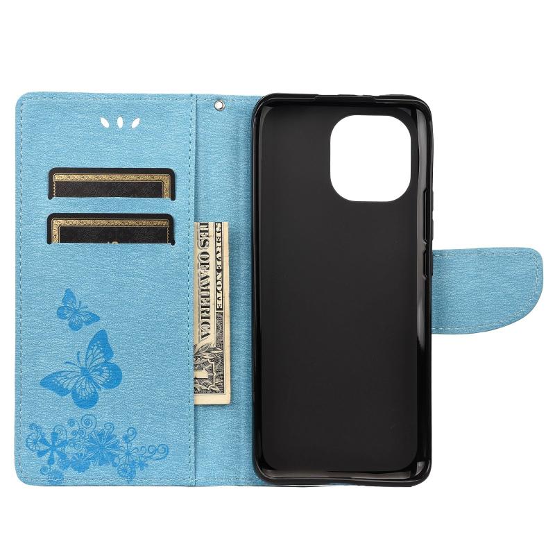 Για Xiaomi Mi 11 Θήκη Δέρματος Οριζόντιας Αναδίπλωσης με Χαρακτό Σχέδιο Vintage, Λουλούδια και Πεταλούδες, με Θήκη Κάρτας & Στήριξη & Πορτοφόλι & Λουρί (Μωβ)