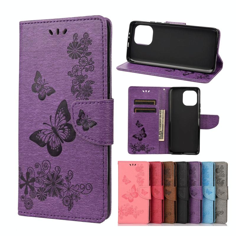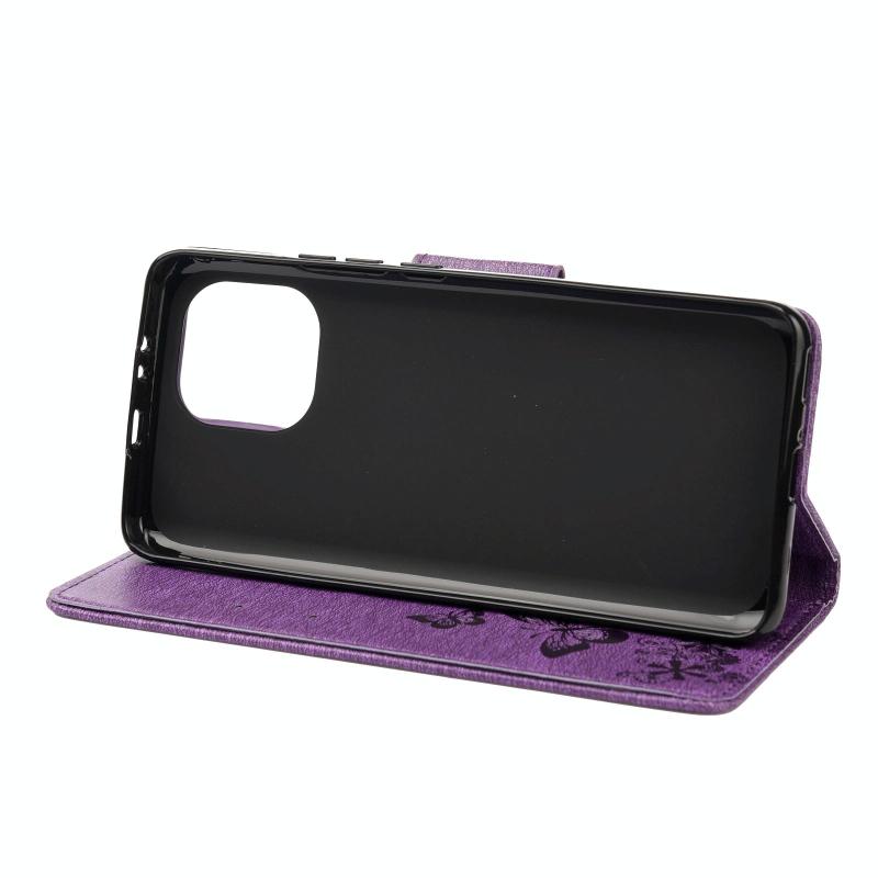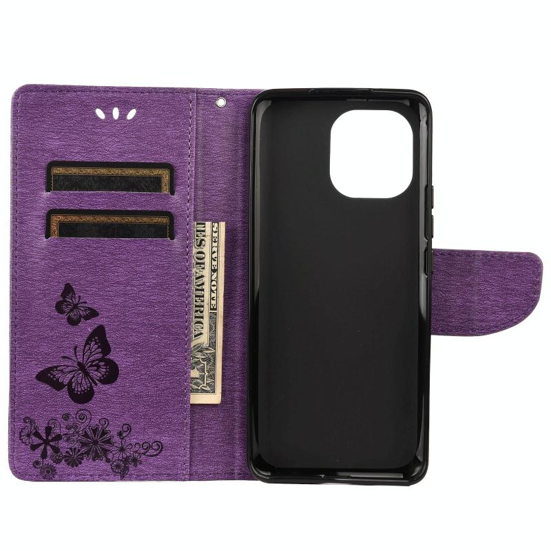 For Xiaomi Mi 11 Vintage Embossed Floral Butterfly Pattern Horizontal Flip Leather Case with Card Slot & Holder & Wallet & Lanyard(Purple)