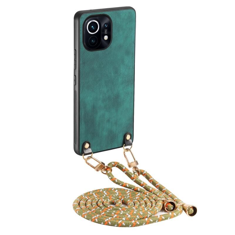 Για Xiaomi Mi 11 εκλεκτής ποιότητας δέρμα PC πίσω κάλυμμα τηλέφωνο υπόθεση με λουράκι σταυρού (πράσινο)