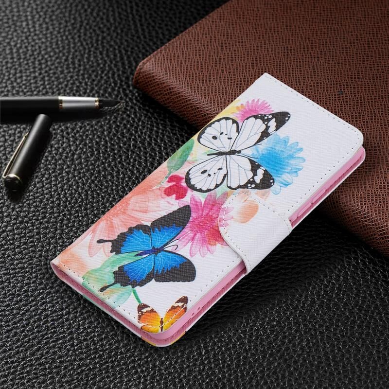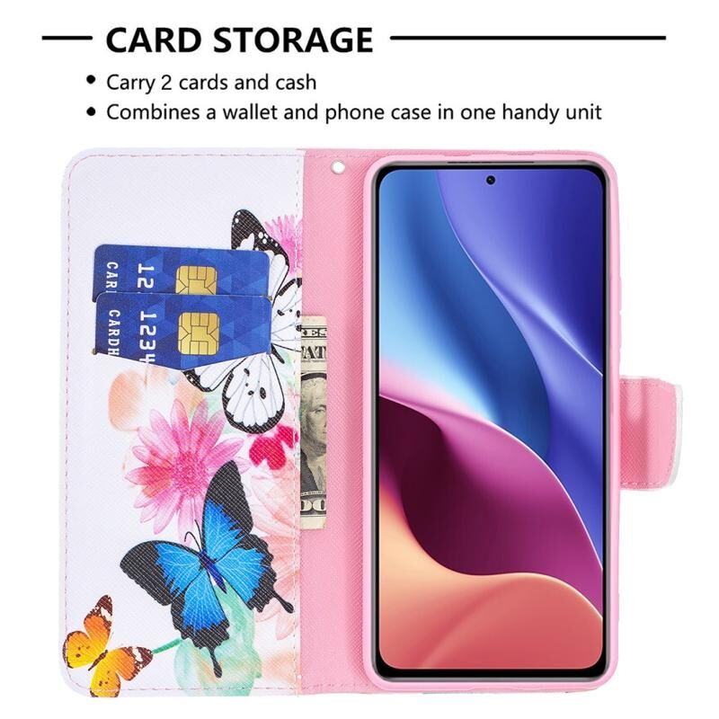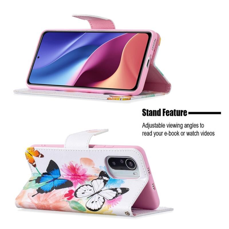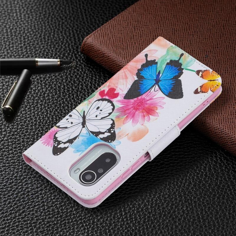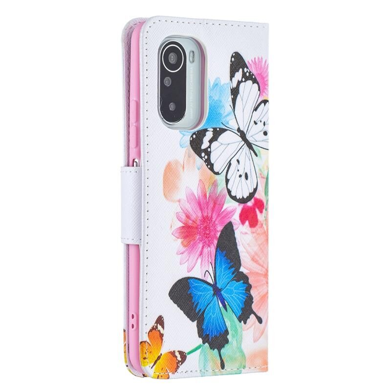Θήκη δέρματος οριζόντιας αναδίπλωσης με σχέδια πολύχρωμης ζωγραφικής για Xiaomi Mi 11i / Poco F3 / Redmi K40 με βάση στήριξης & υποδοχές καρτών & πορτοφόλι (Πεταλούδες)