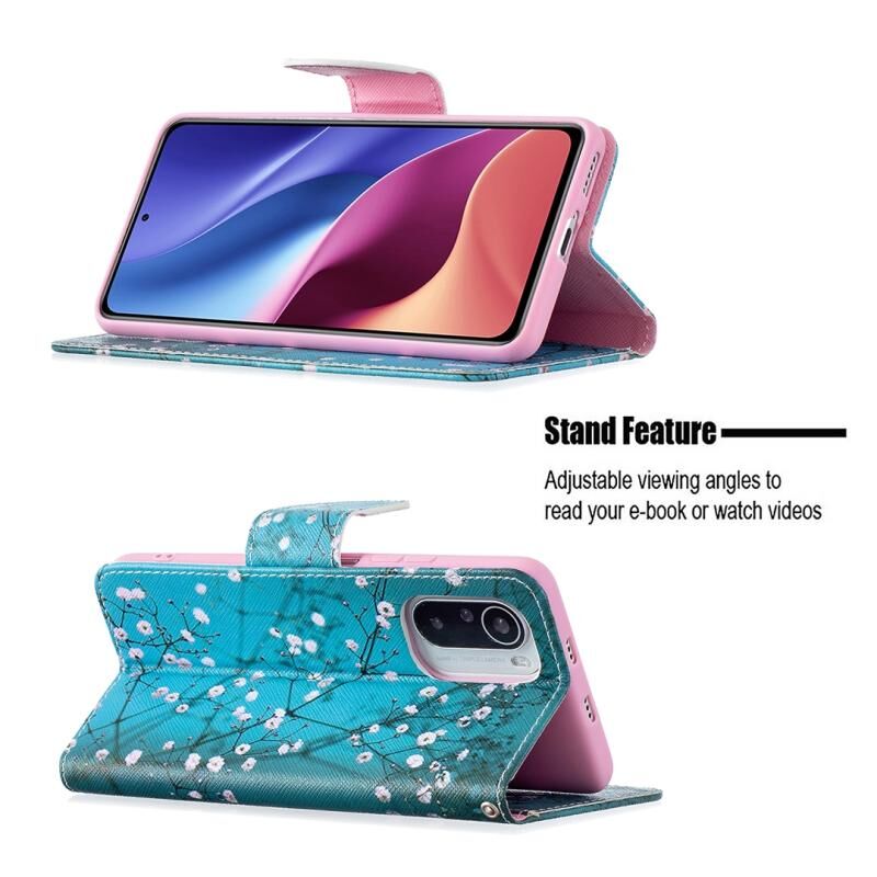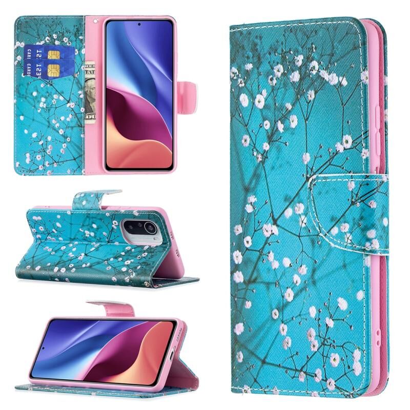 Θήκη δέρματος οριζόντιας αναδίπλωσης με σχέδια πολύχρωμης ζωγραφικής για Xiaomi Mi 11i / Poco F3 / Redmi K40 με βάση στήριξης & υποδοχές καρτών & πορτοφόλι (Λουλούδι Δαμασκηνιάς)