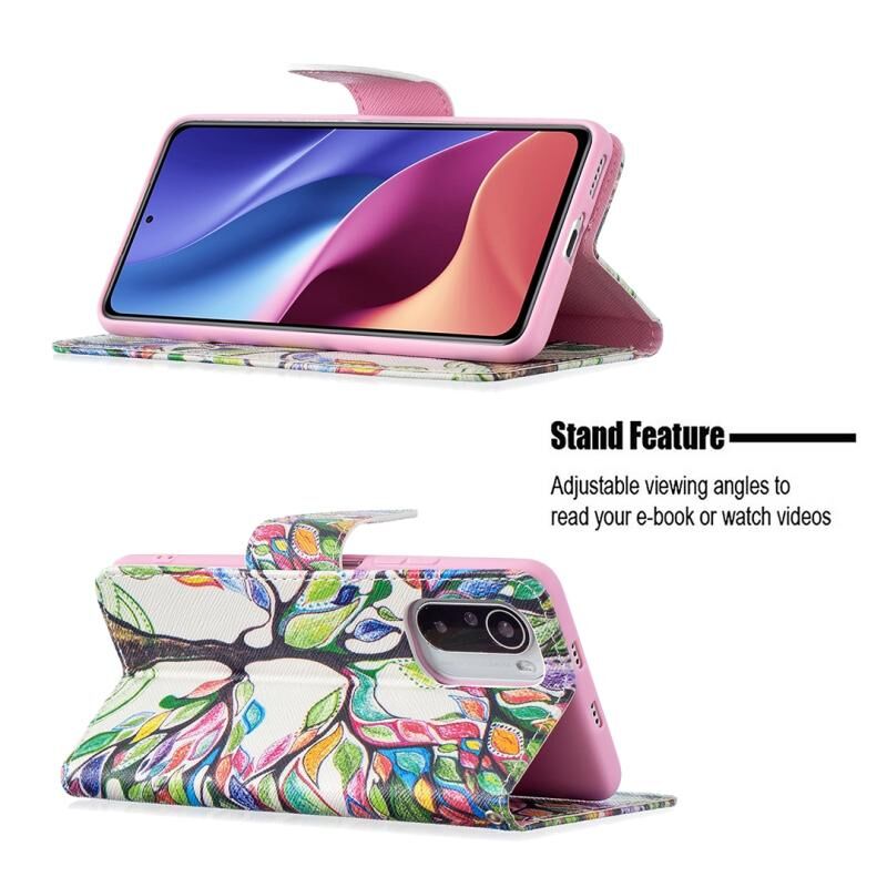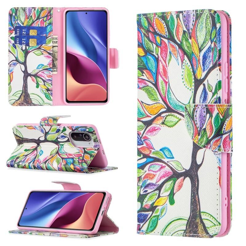 Θήκη δέρματος οριζόντιας αναδίπλωσης με σχέδιο ζωγραφικής και χρώματα για Xiaomi Mi 11i / Poco F3 / Redmi K40 με βάση στήριξης & υποδοχές καρτών & πορτοφόλι (Δέντρο Ζωής)