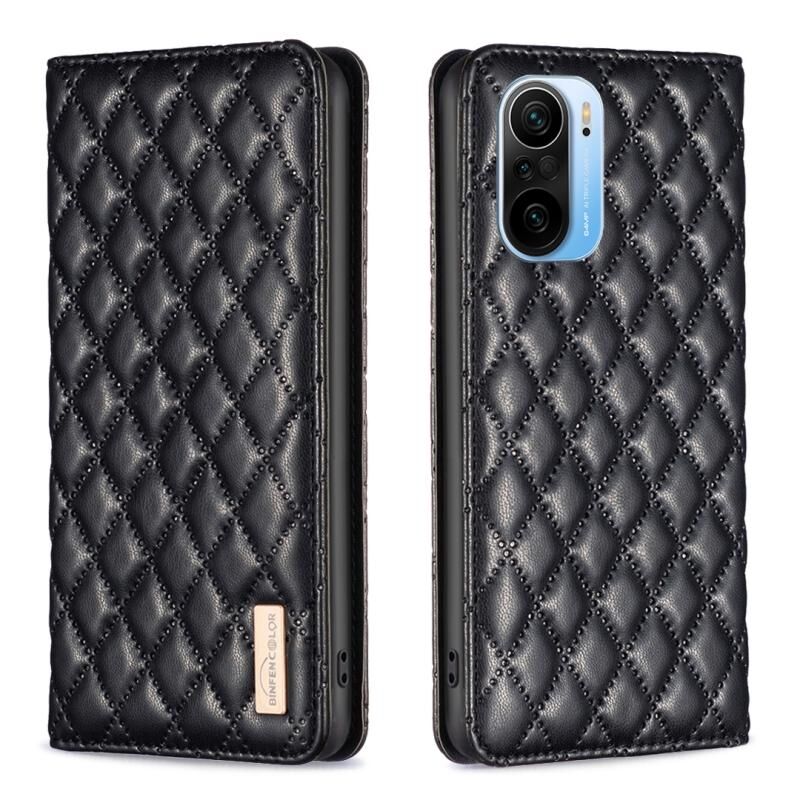 Για Xiaomi Mi 11i / Poco F3 / Redmi K40 Diamond Lattice Μαγνητική δερμάτινη θήκη τηλεφώνου Flip (Μαύρο)