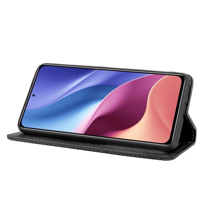 Για Xiaomi Mi 11i/ Poco F3 / Redmi K40 / K40 Pro / K40 Pro+ Μαγνητική πόρπη Ρετρό τρελό άλογο υφή οριζόντια Flip δερμάτινη θήκη με θήκη & υποδοχές για κάρτες & πλαίσιο φωτογραφιών (μαύρο)