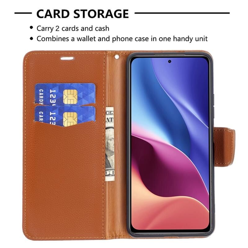 Για Xiaomi Mi 11i / Poco F3 / Redmi K40 /K40 Pro Litchi Texture Pure Color Οριζόντια Flip δερμάτινη θήκη με θήκη & υποδοχές καρτών & πορτοφόλι & κορδόνι (Καφέ)