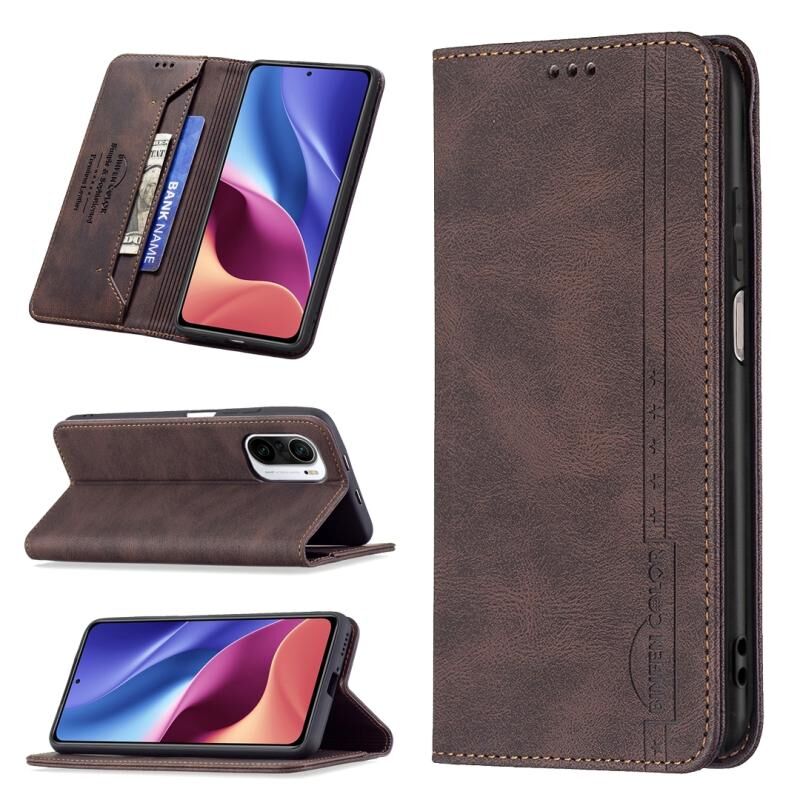 Για Xiaomi Mi 11i/Poco F3/Redmi K40/K40 Pro Μαγνητικό RFID Blocking Anti-Theft Δερμάτινη θήκη με θήκη & υποδοχές καρτών & πορτοφόλι (καφέ)