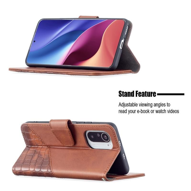 Θήκη οριζόντιας αναδίπλωσης από δερματίνη PU με υφή κροκόδειλου, σε ταιριαστό χρώμα για Xiaomi Mi 11i / Poco F3 / Redmi K40, με πορτοφόλι, βάση & θήκες για κάρτες (Μαύρο)
