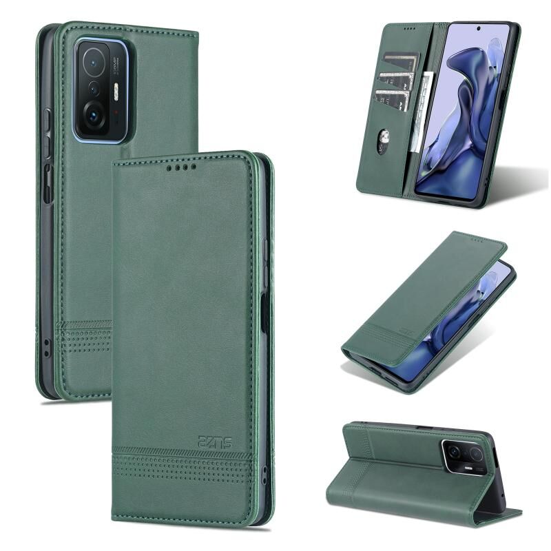 Για Xiaomi Mi 11T / 11T Pro AZNS Μαγνητικό μοσχάρι υφή οριζόντια Flip τηλέφωνο δερμάτινη θήκη (σκούρο πράσινο) (Σκούρο πράσινο)