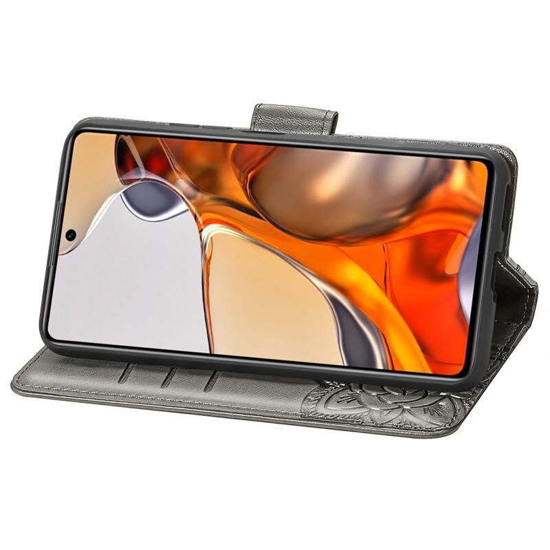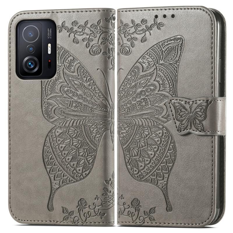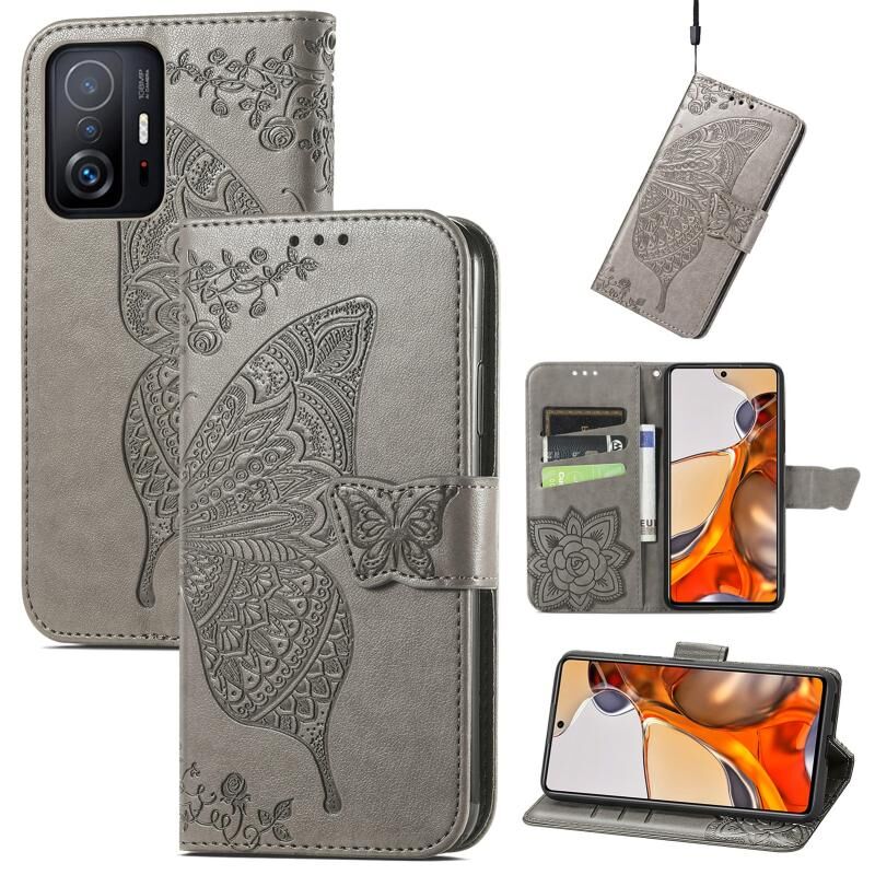 Για Xiaomi Mi 11T / 11T Pro Πεταλούδα αγάπη λουλούδια ανάγλυφη οριζόντια Flip δερμάτινη θήκη με κάτοχο & υποδοχές καρτών & πορτοφόλι & κορδόνι (γκρι)