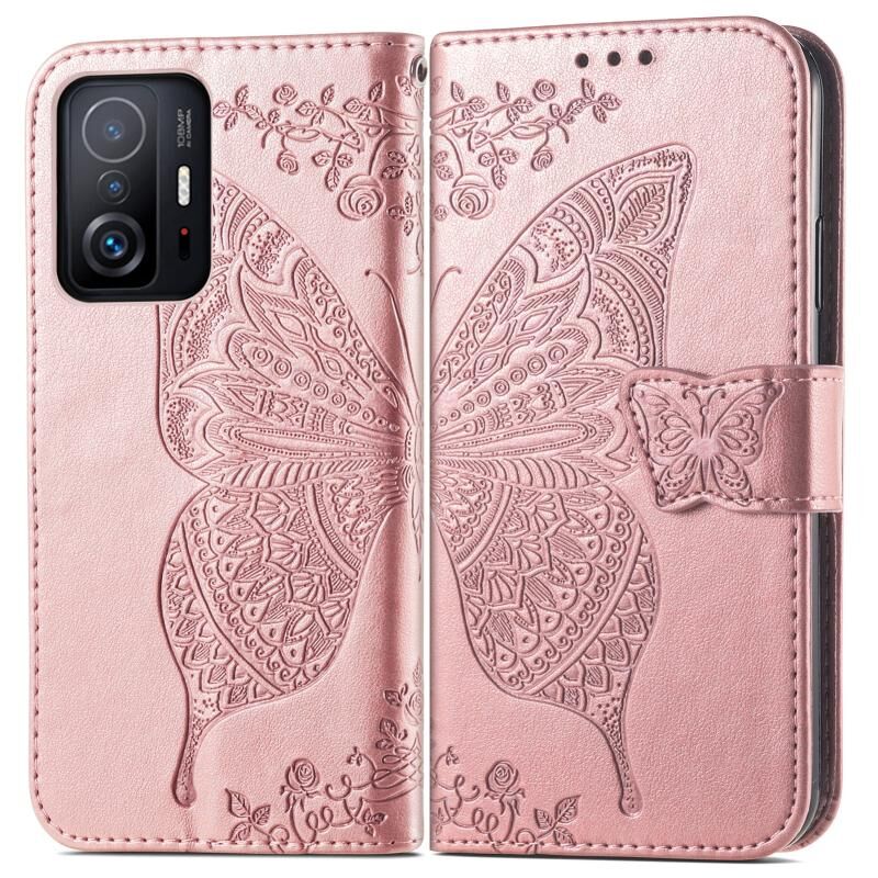 Για Xiaomi Mi 11T / 11T Pro Πεταλούδα αγάπη λουλούδια ανάγλυφη οριζόντια Flip δερμάτινη θήκη με κάτοχο & υποδοχές καρτών & πορτοφόλι & κορδόνι (Rose Gold)