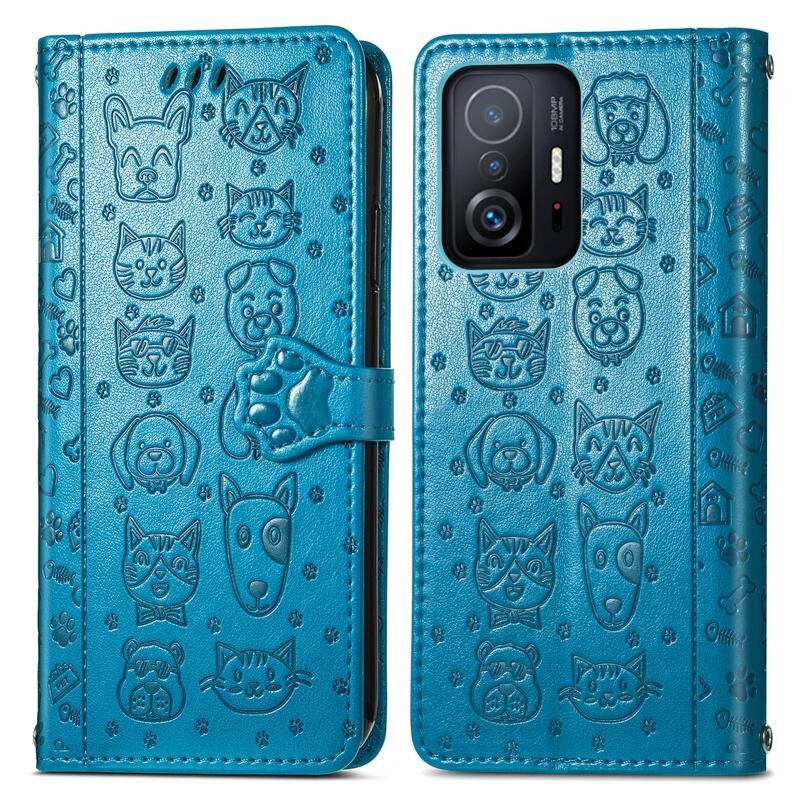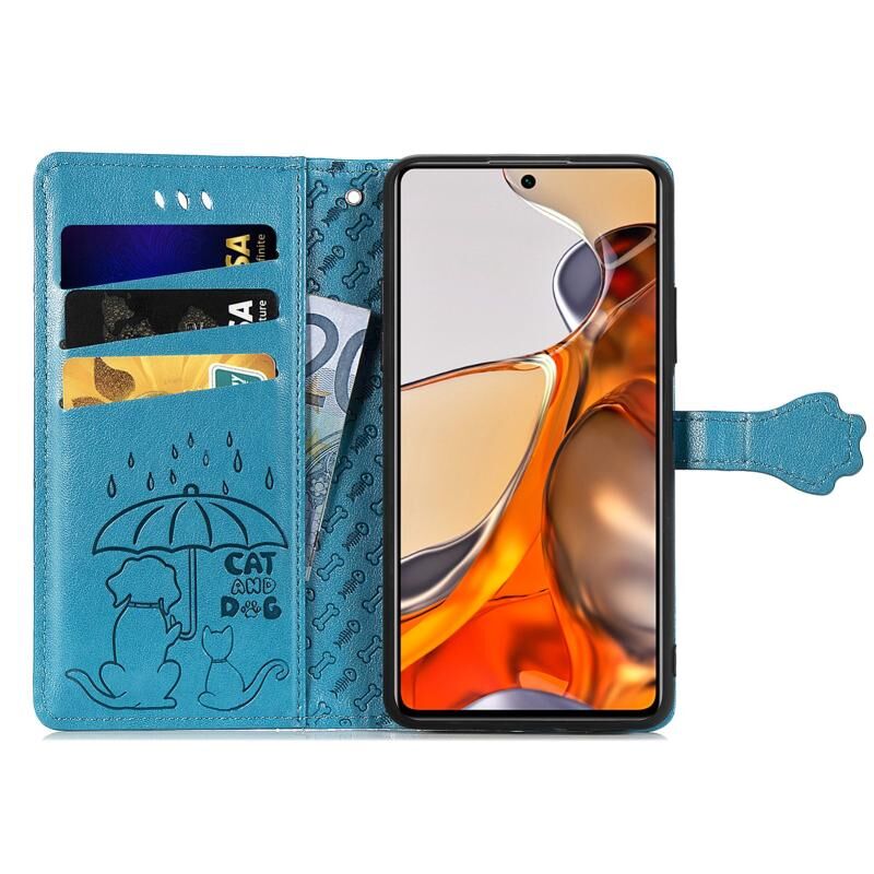 Για Xiaomi Mi 11T / 11T Pro Θήκη τηλεφώνου από δέρμα με οριζόντιο άνοιγμα, με ανάγλυφο σχέδιο γάτας και σκύλου, με βάση στήριξης & υποδοχή κάρτας & πορτοφόλι & κορδόνι (Ροζ)