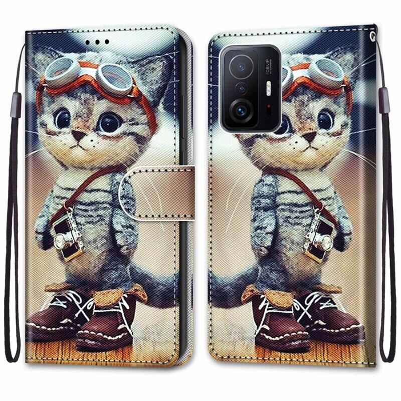 Για Xiaomi Mi 11T / 11T Pro Θήκη τηλεφώνου από δέρμα PU με σταυρωτή υφή, οριζόντιο άνοιγμα, με πολύχρωμο σχέδιο (γάτα με δερμάτινα παπούτσια), βάση στήριξης, θήκες για κάρτες, πορτοφόλι και κορδόνι.