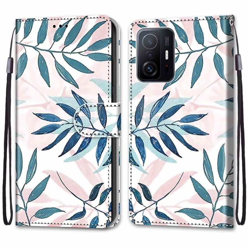 Για Xiaomi Mi 11T / 11T Pro Θήκη τηλεφώνου από δέρμα PU με σταυρωτή υφή, οριζόντιο άνοιγμα, με πολύχρωμο σχέδιο, βάση στήριξης, θήκες για κάρτες, πορτοφόλι & κορδόνι (Πολύχρωμη στρώση (Ροζ Πράσινες Βελόνες)