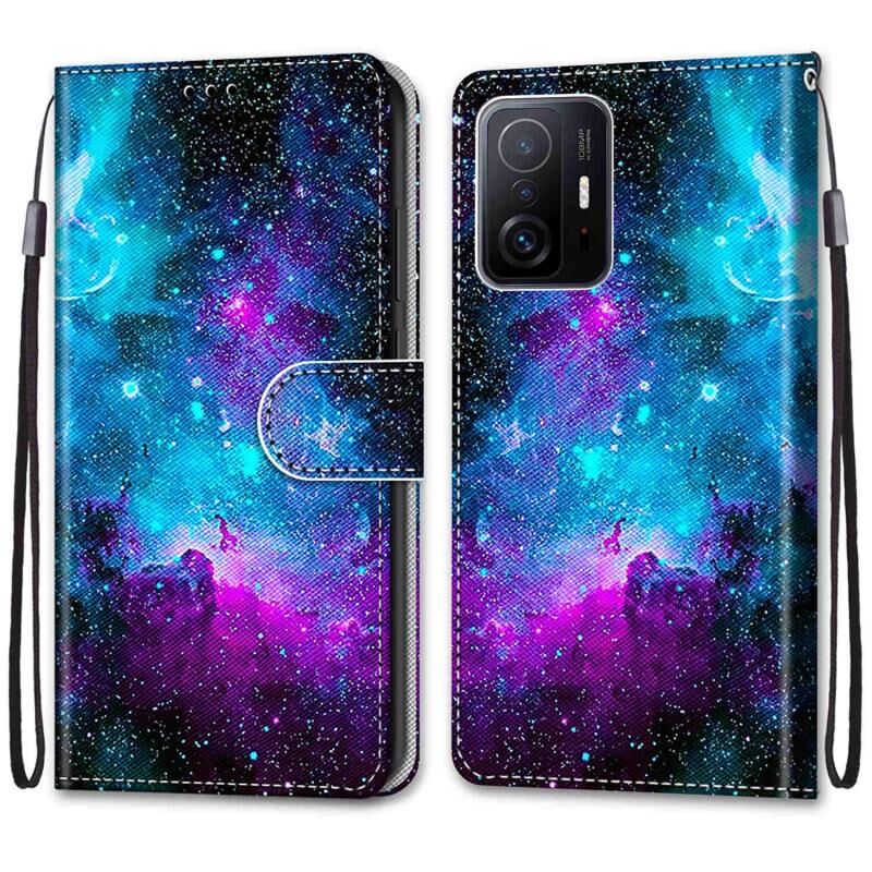 Για Xiaomi Mi 11T / 11T Pro Θήκη τηλεφώνου από δέρμα PU με σταυρωτή υφή, οριζόντιο άνοιγμα, πολύχρωμο σχέδιο με βάση για κάρτες, πορτοφόλι και κορδόνι (Πολύχρωμο στρώμα (Χρυσή αλυσίδα, Γκρίζο Γάτα))