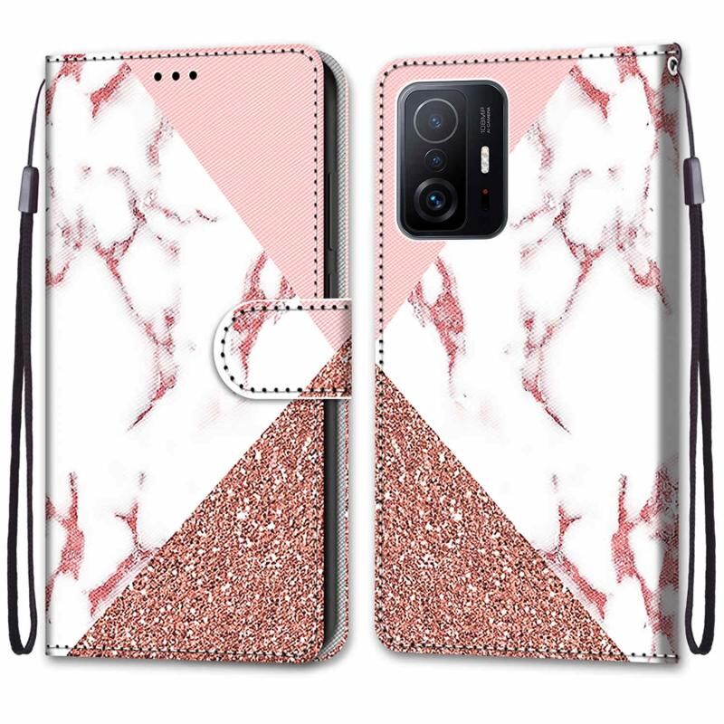 Για Xiaomi Mi 11T / 11T Pro Θήκη τηλεφώνου από δέρμα PU με σταυρωτή υφή, οριζόντιο άνοιγμα, πολύχρωμο σχέδιο με βάση για κάρτες, πορτοφόλι και κορδόνι (Πολύχρωμο στρώμα (Χρυσή αλυσίδα, Γκρίζο Γάτα))