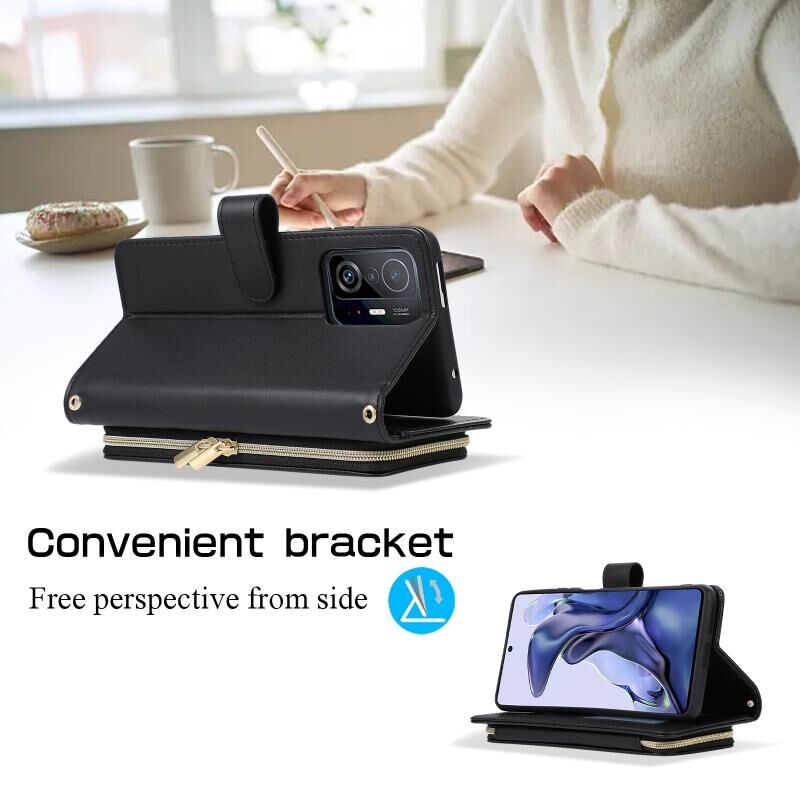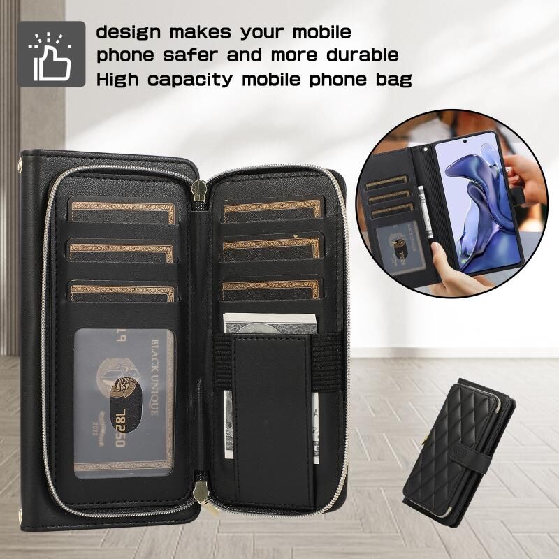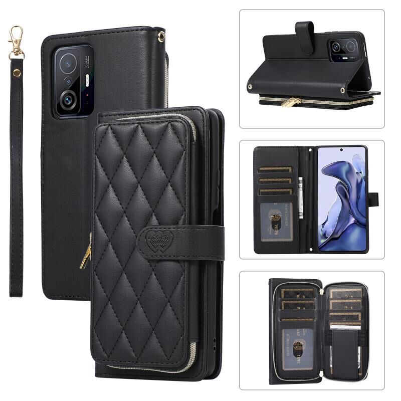 Για Xiaomi Mi 11T / 11T Pro Rhombic Full φερμουάρ πορτοφόλι δερμάτινη θήκη τηλεφώνου (Μαύρο)