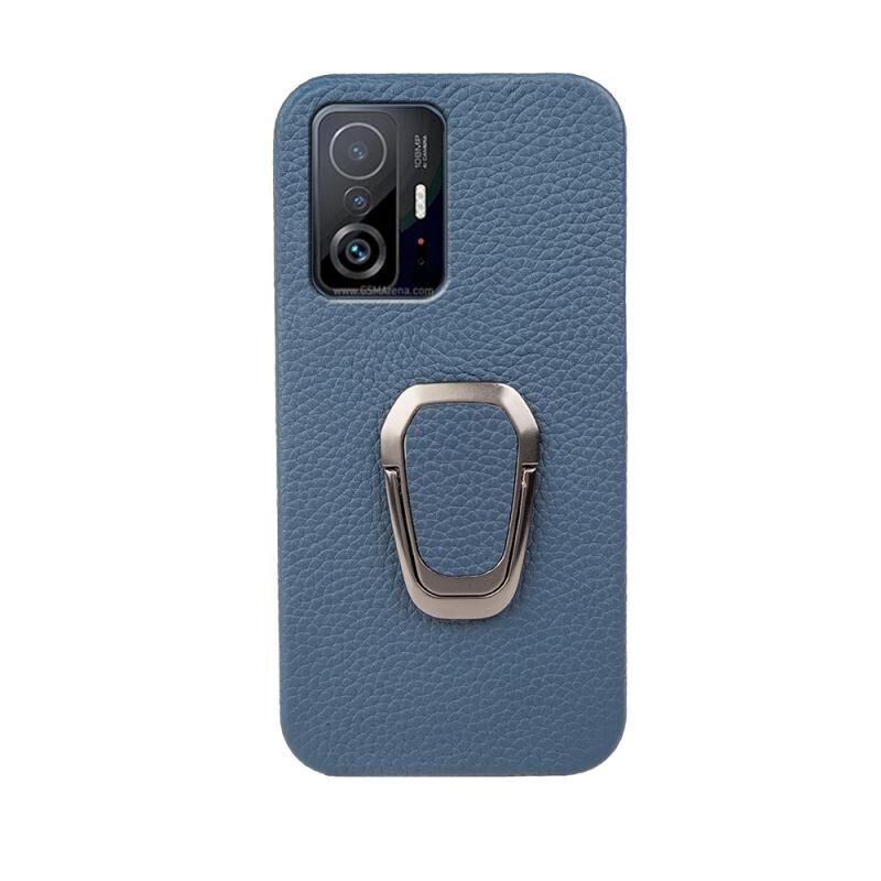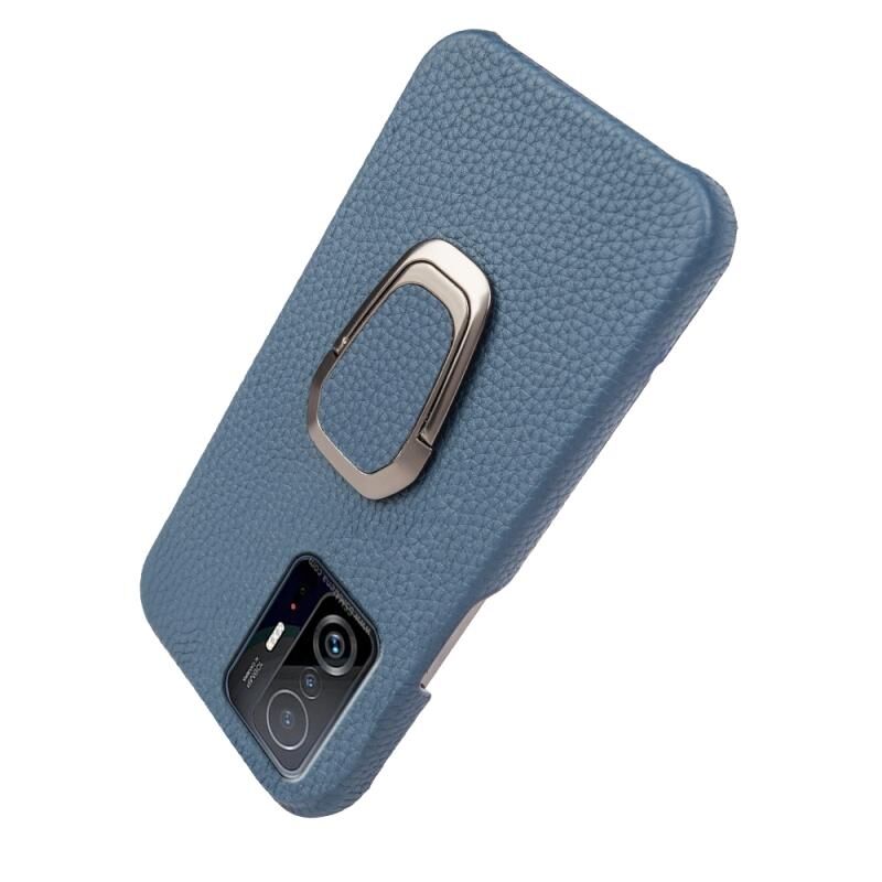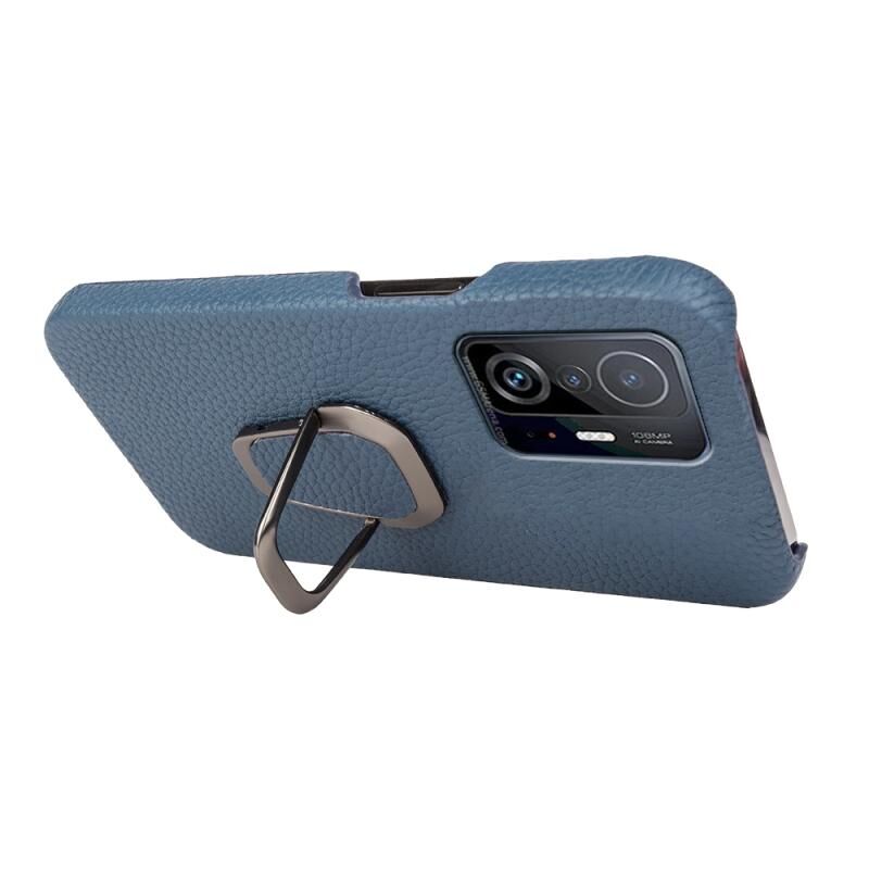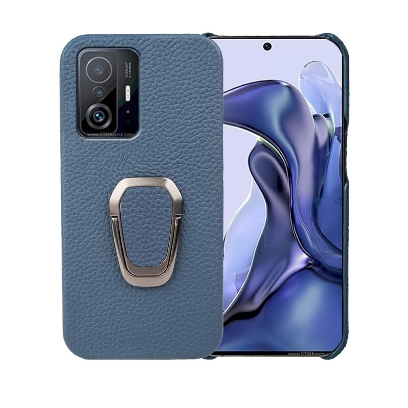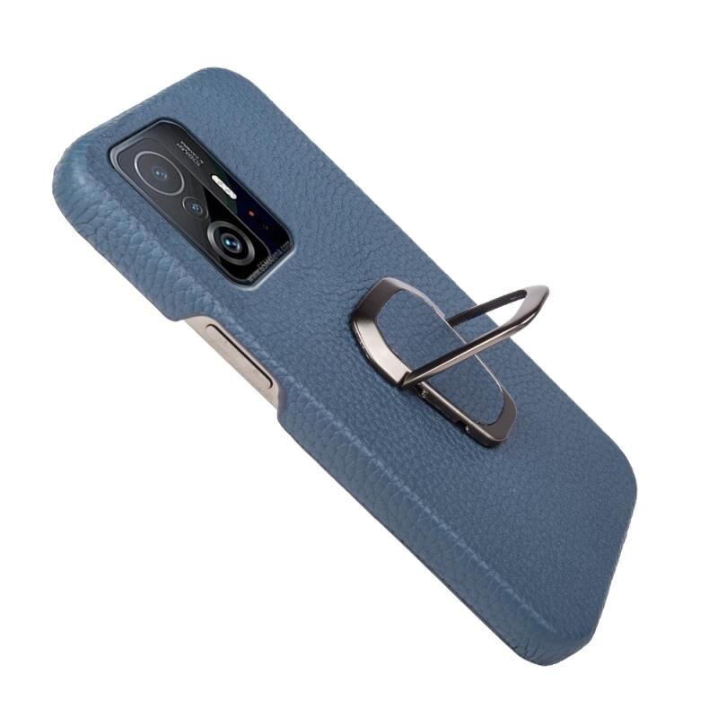 Για Xiaomi Mi 11T / 11T Pro Ring Holder Litchi υφή γνήσιο δέρμα τηλέφωνο υπόθεση (Μπλε)