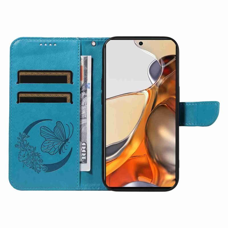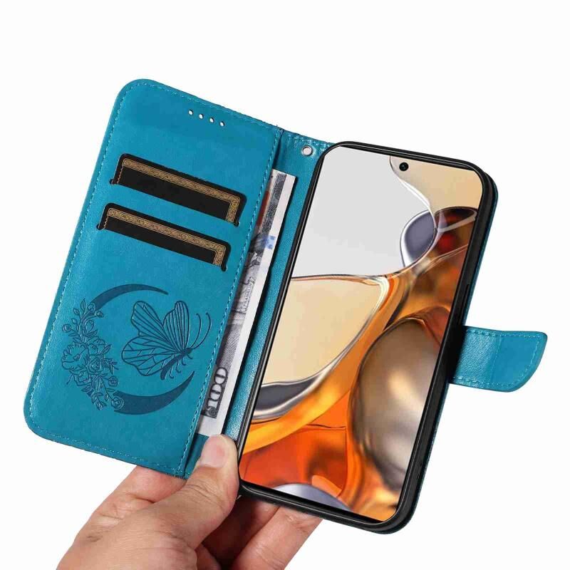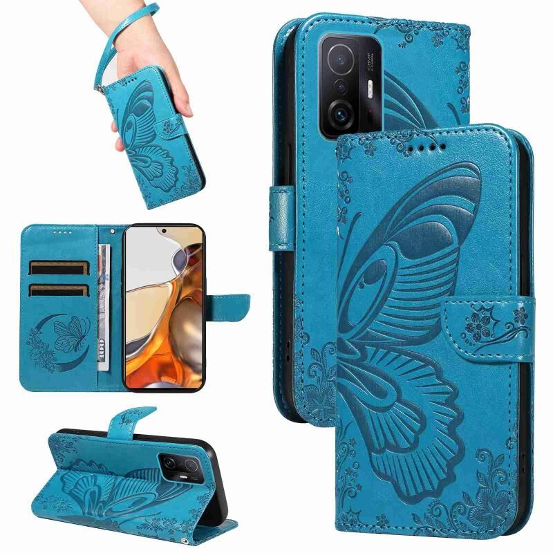 Θήκη τηλεφώνου από δέρμα με ανάγλυφο σχέδιο πεταλούδας Swallowtail για Xiaomi Mi 11T / 11T Pro (Μπλε)