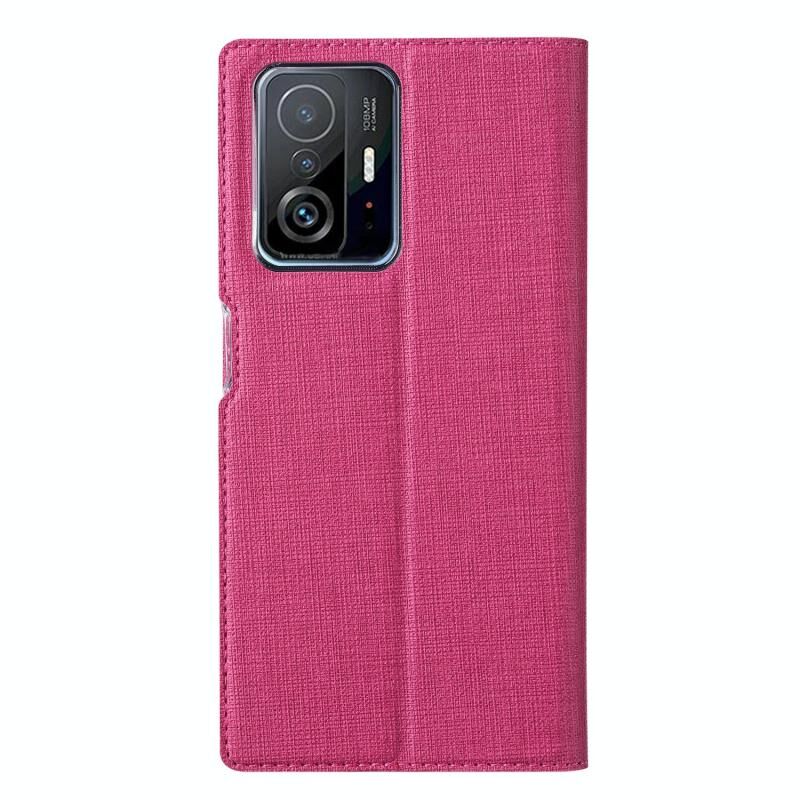 Θήκη δέρματος με μαγνητικό κλείσιμο και προστασία από κραδασμούς για Xiaomi Mi 11T / 11T Pro σειρά ViLi DMX (Μαύρο) (Ροζέ κόκκινο)