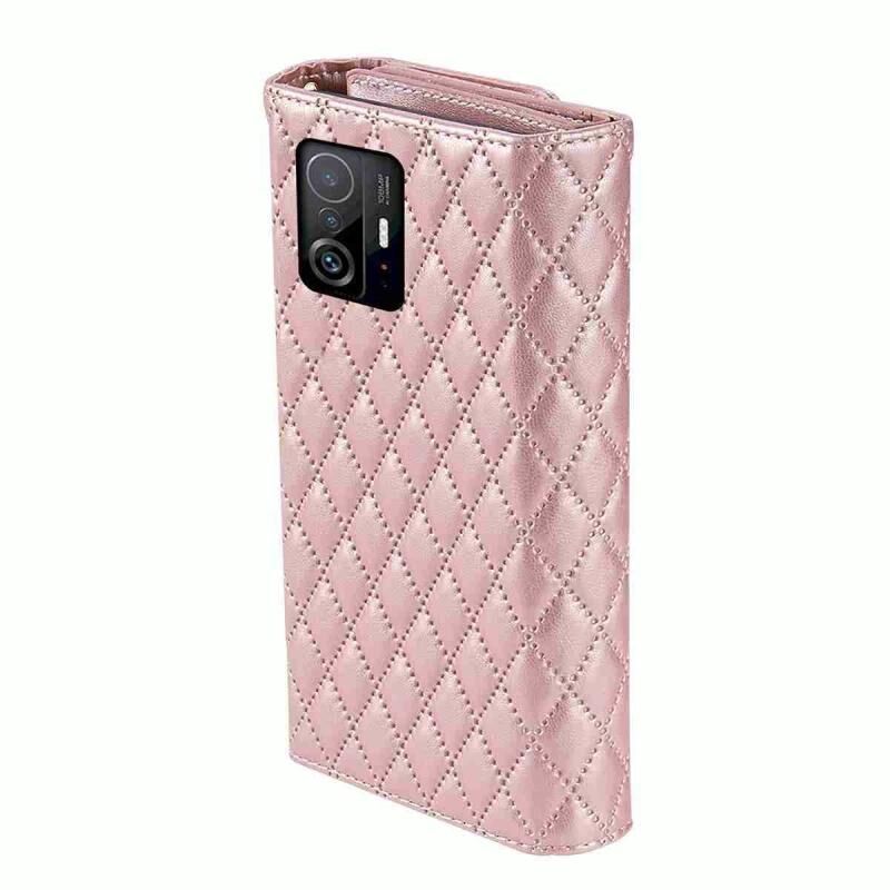 Για Xiaomi Mi 11T / 11T Pro φερμουάρ πολλαπλών καρτών πορτοφόλι ρομβοειδής δερμάτινη θήκη τηλεφώνου (ροζ χρυσό)