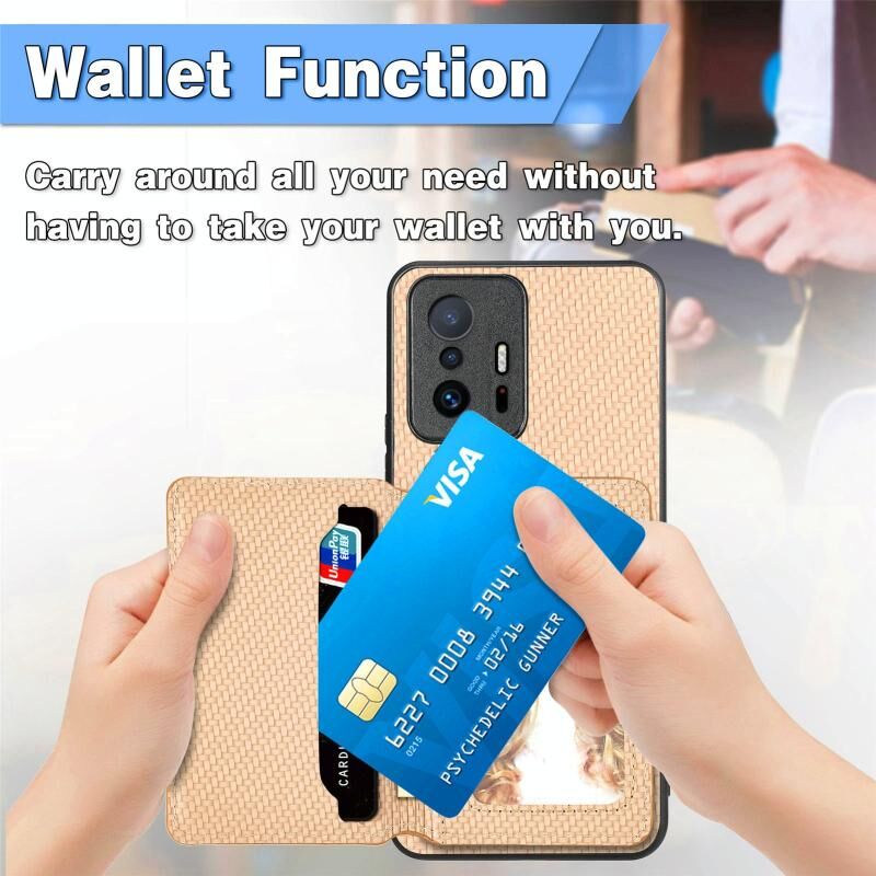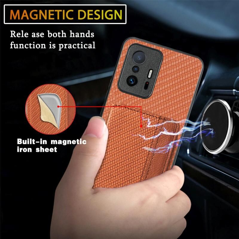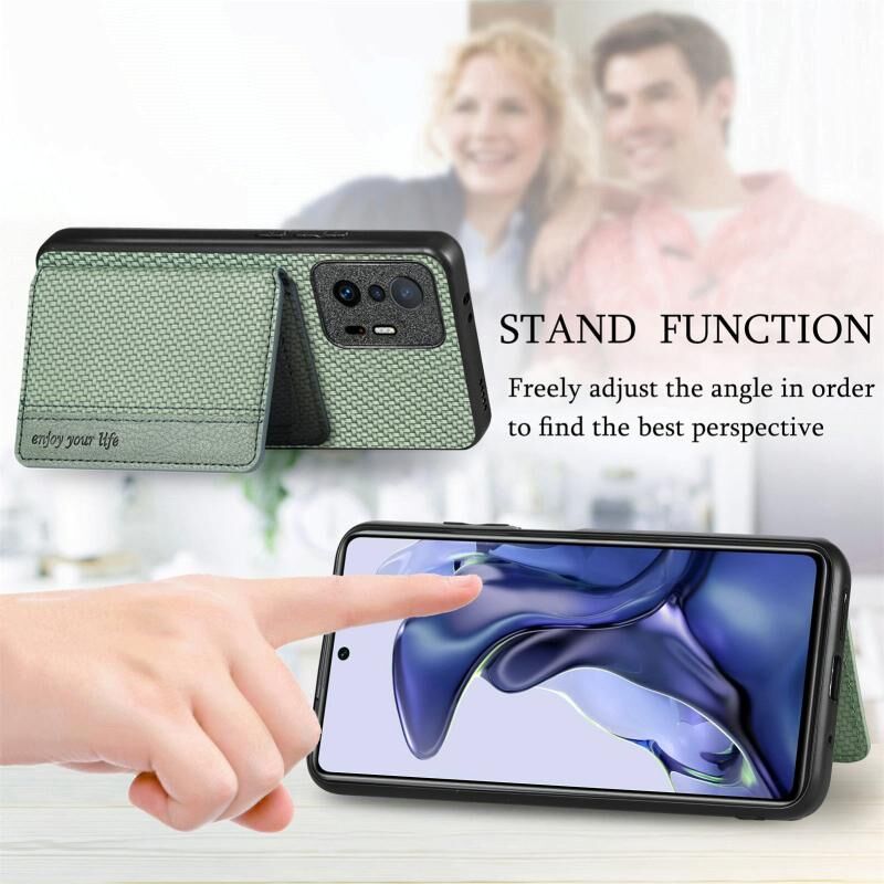 Για Xiaomi Mi 11T Carbon Fiber μαγνητική κάρτα τσάντα υπόθεση τηλεφώνου (χακί)