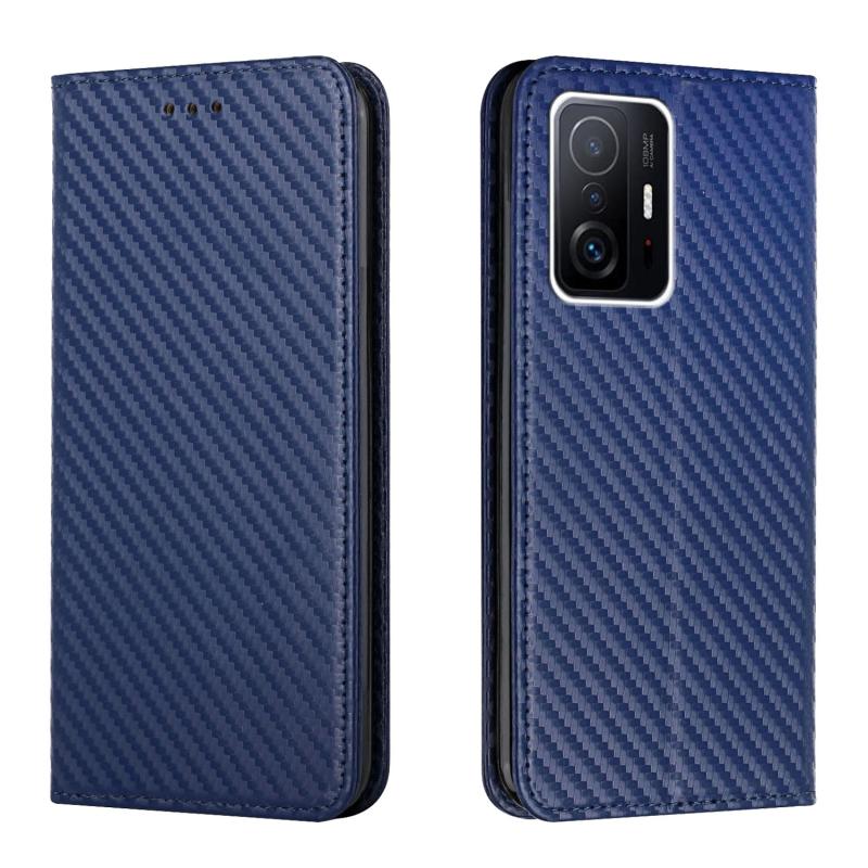 Για Xiaomi Mi 11T Θήκη Δερμάτινη με Υφή Άνθρακα Flip (Μπλε)