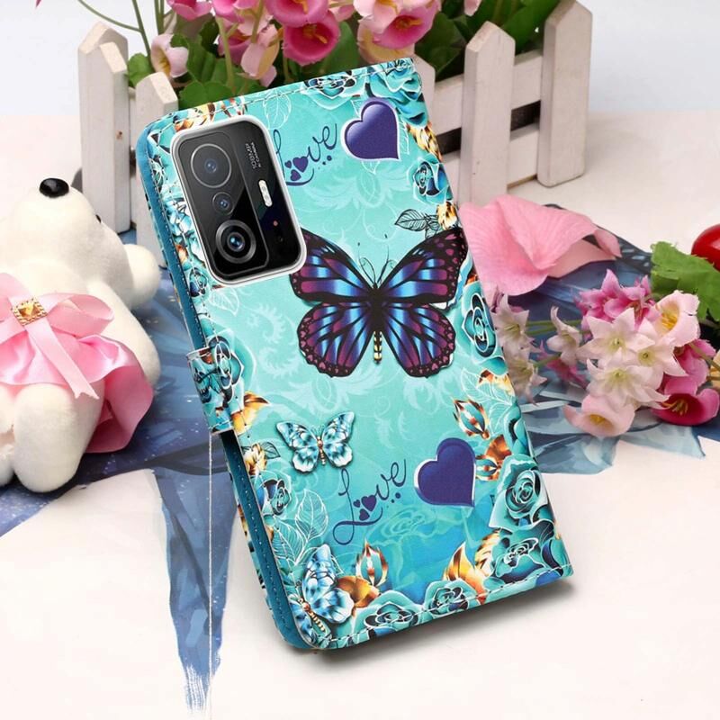 Για Xiaomi Mi 11T Θήκη Δέρματος Οριζόντιας Αναδίπλωσης με Σχέδιο Χρωματιστής Ζωγραφικής, Απλή Υφαντή, με Στήριξη & Θήκη Κάρτας & Πορτοφόλι & Λουρί (Φροντίδα Πεταλούδας)