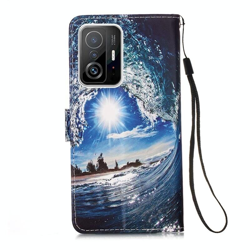 Για Xiaomi Mi 11T Θήκη Δέρματος Οριζόντιας Αναδίπλωσης με Σχέδιο Χρωματιστής Ζωγραφικής, Απλή Υφαντή, με Στήριξη & Θήκη Κάρτας & Πορτοφόλι & Λουρί (Κύματα Και Ήλιος)