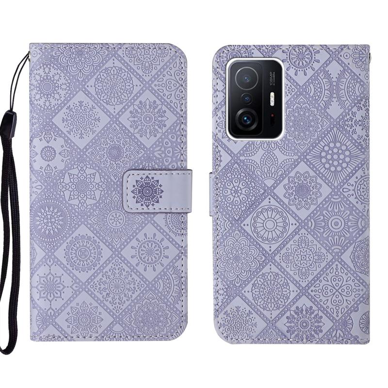 Θήκη τηλεφώνου δερμάτινη με ανάγλυφο εθνοτικό σχέδιο για Xiaomi Mi 11T (Μωβ)
