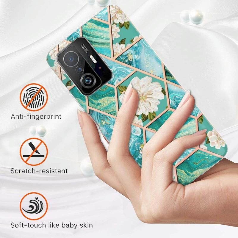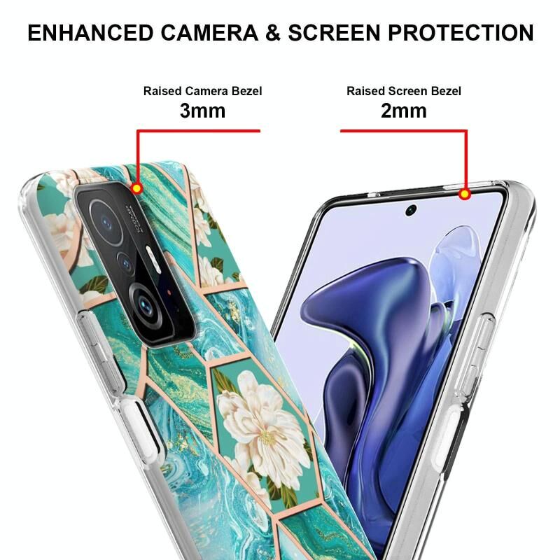 Θήκη τηλεφώνου TPU με ηλεκτρολυτική επιμετάλλωση και ψηφιδωτό σχέδιο από μάρμαρο και λουλούδια για Xiaomi Mi 11T / Mi 11T Pro (Ροζ Λουλούδι)