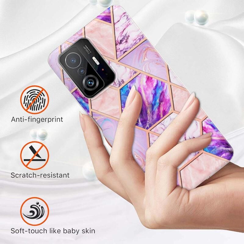 Θήκη τηλεφώνου TPU με ηλεκτρολυτική επιμετάλλωση και μαρμάρινη σύνθεση για Xiaomi Mi 11T / Mi 11T Pro (Σκούρο Μωβ)