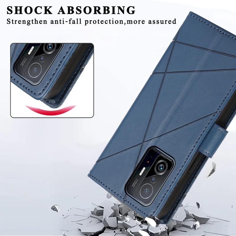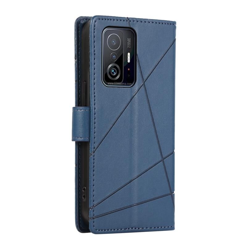 Θήκη τηλεφώνου Xiaomi Mi 11T από γνήσιο δέρμα PU με ανάγλυφη υφή και γραμμές (Μπλε)