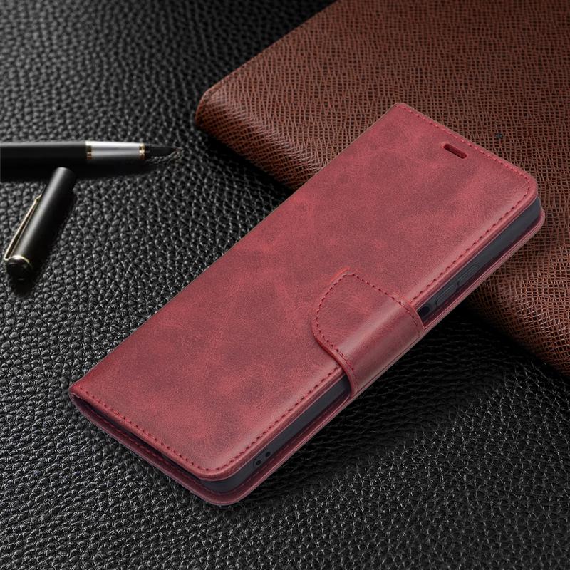 Θήκη για Xiaomi Mi 11T με υφή retro δέρματος αρνιού, απλό χρώμα, οριζόντια αναδιπλούμενη από δερματίνη PU με βάση στήριξης & υποδοχές καρτών & πορτοφόλι & κορδόνι (Κόκκινο)