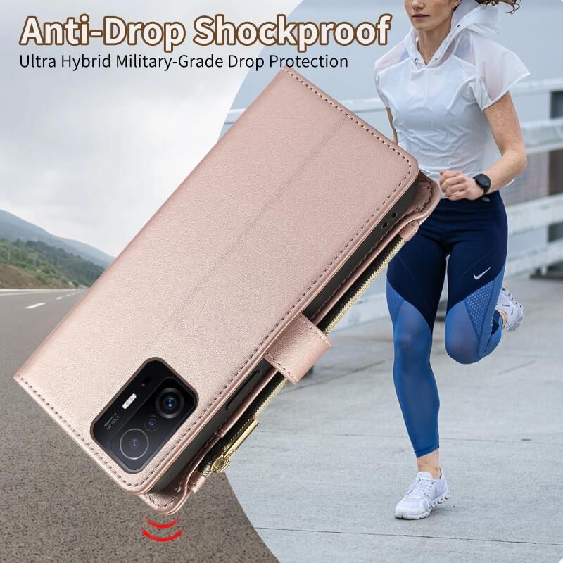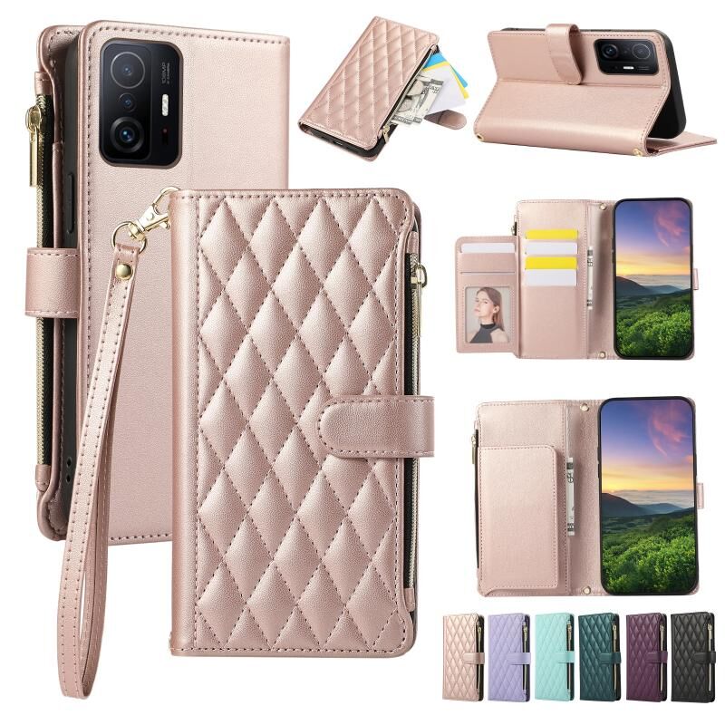 Για Xiaomi Mi 11T Ρομβική φερμουάρ πορτοφόλι δερμάτινη θήκη τηλεφώνου (ροζ χρυσό)