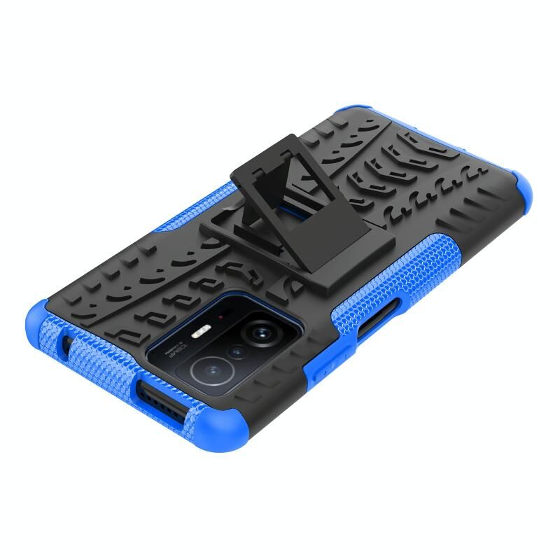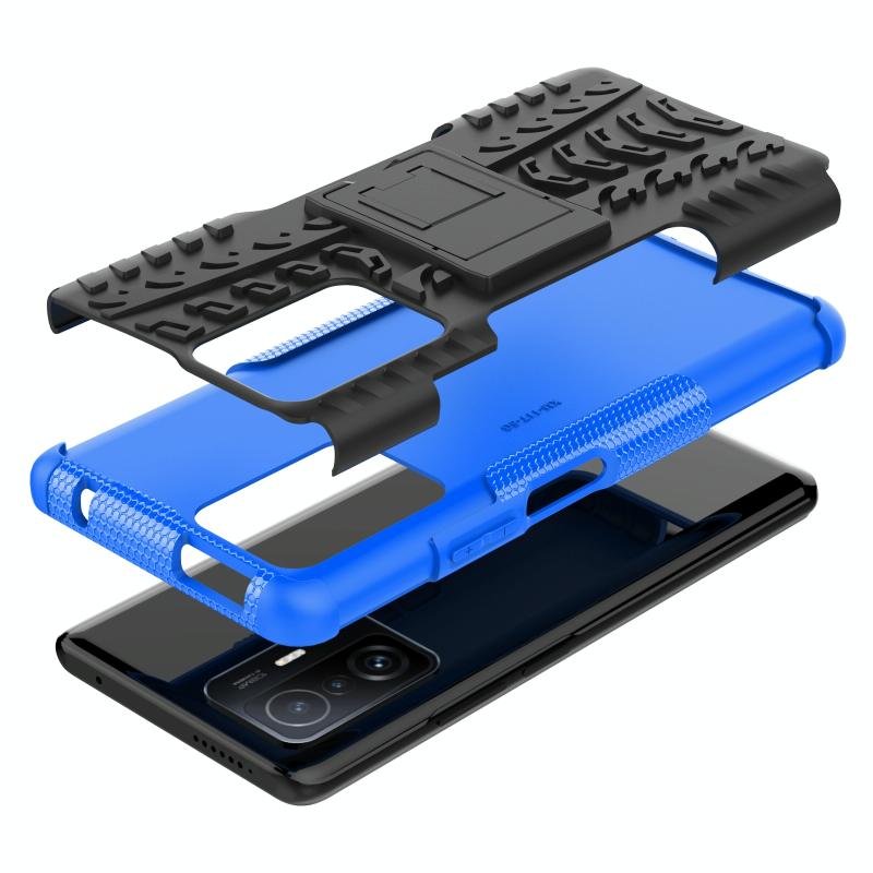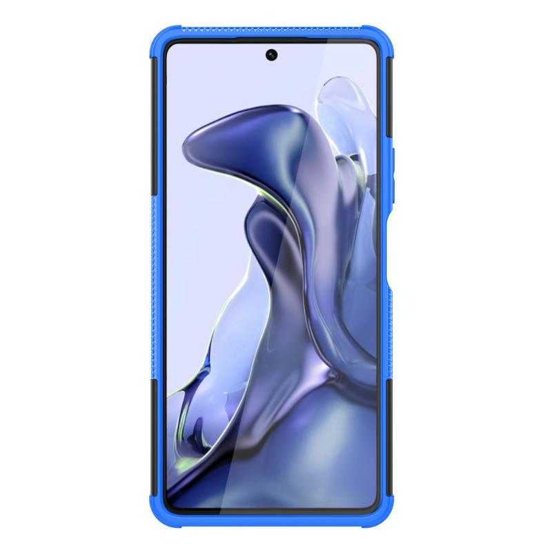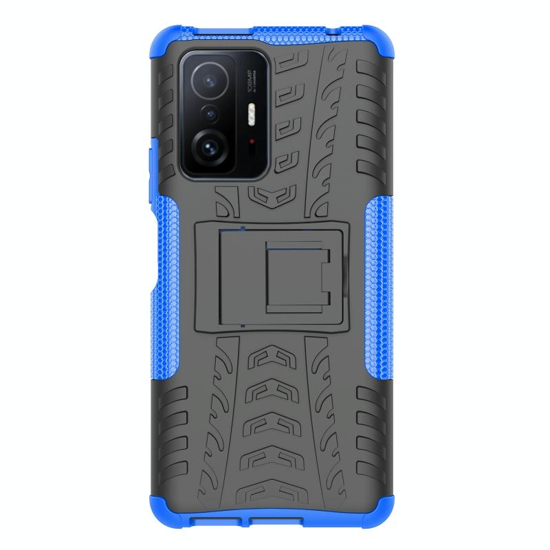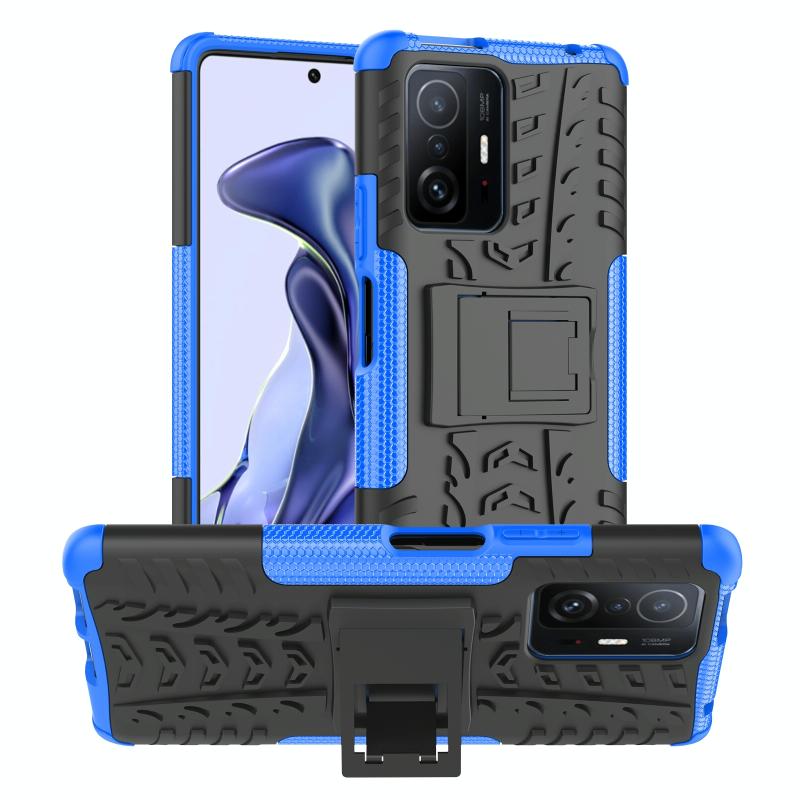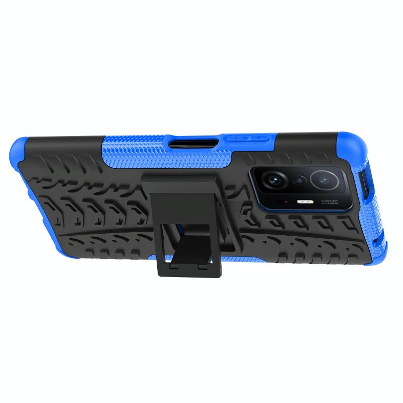 Θήκη κινητού τηλεφώνου για Xiaomi Mi 11T με υφή ελαστικού αυτοκινήτου TPU + PC με βάση στήριξης (Μπλε)