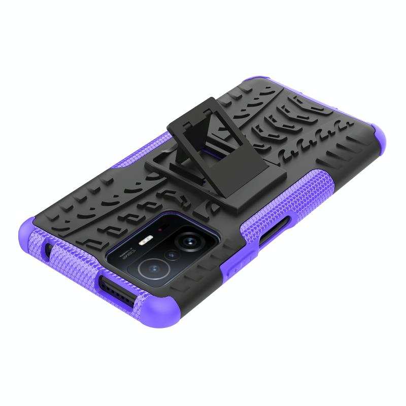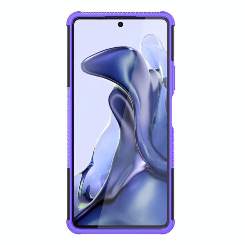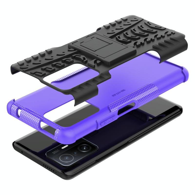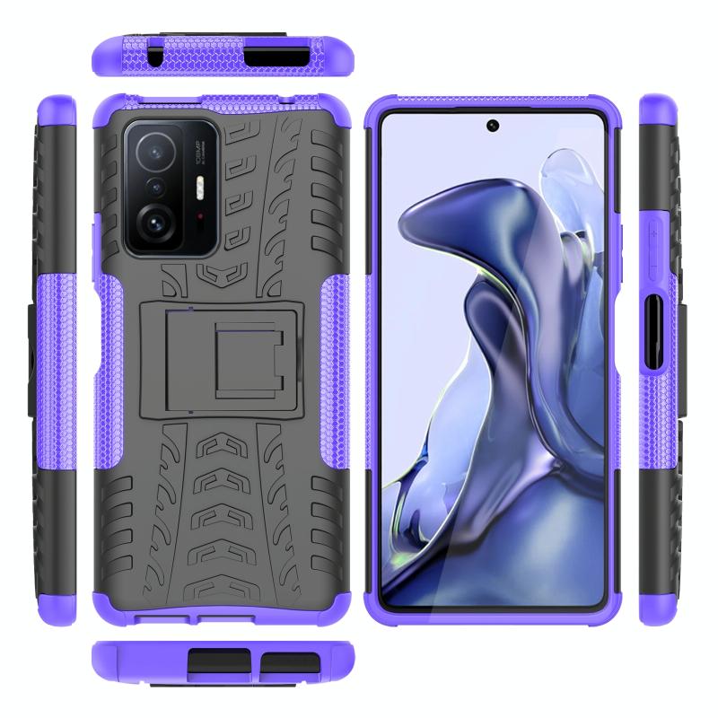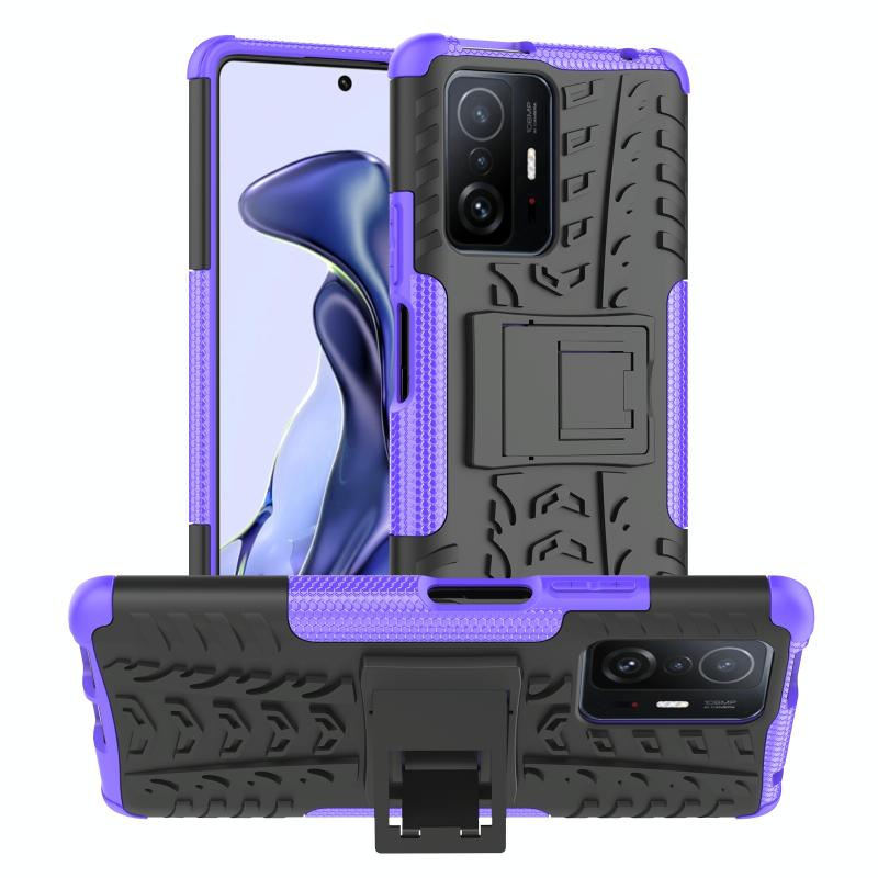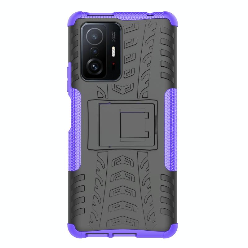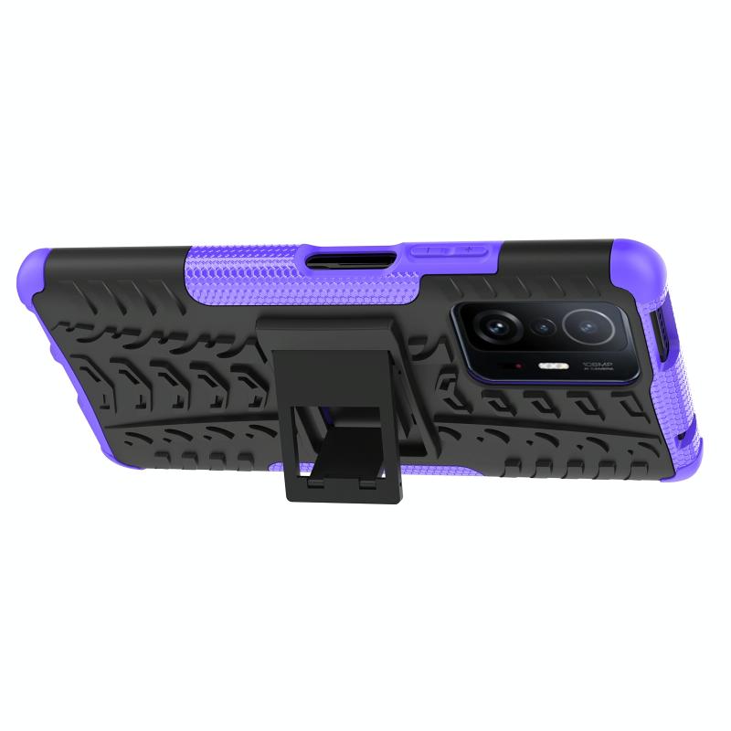 Θήκη κινητού τηλεφώνου για Xiaomi Mi 11T με υφή ελαστικού αυτοκινήτου TPU + PC με βάση στήριξης (Μωβ)