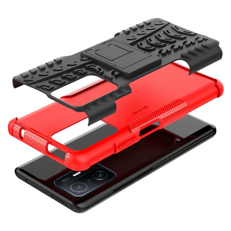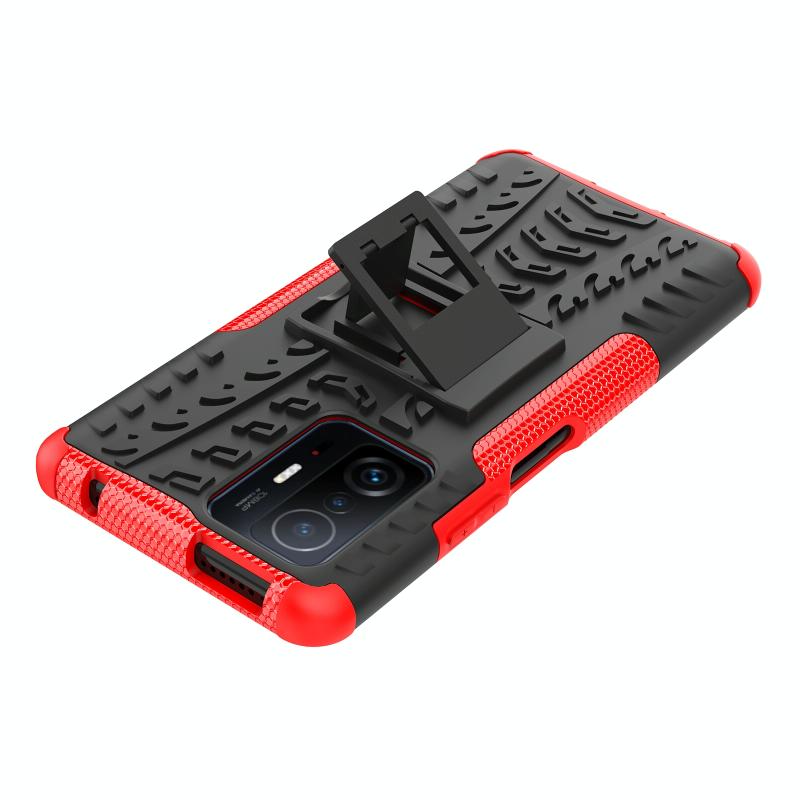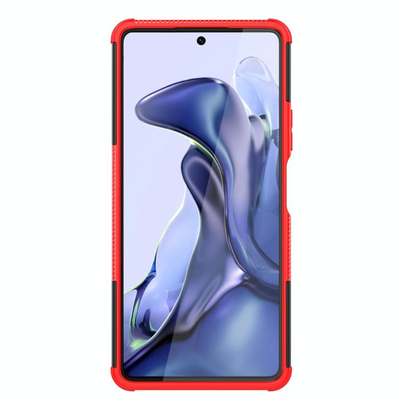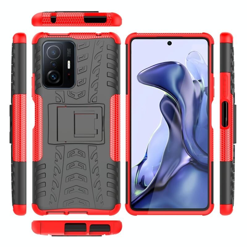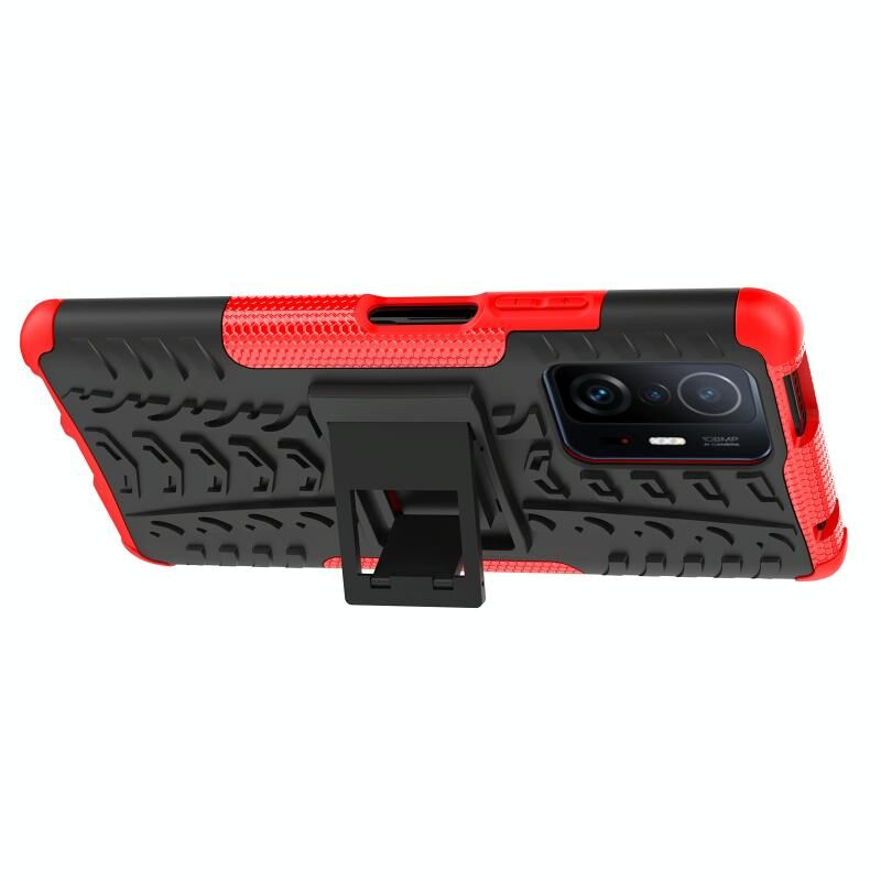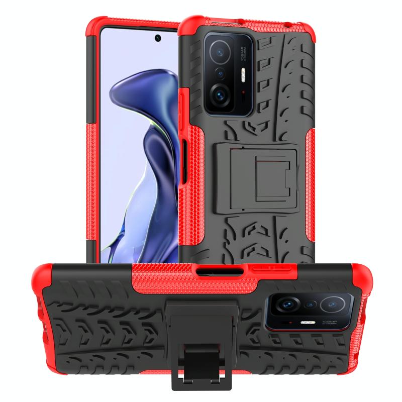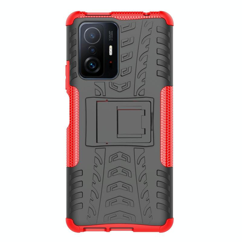 Θήκη κινητού τηλεφώνου για Xiaomi Mi 11T με υφή ελαστικού αυτοκινήτου TPU + PC με βάση στήριξης (Κόκκινο)