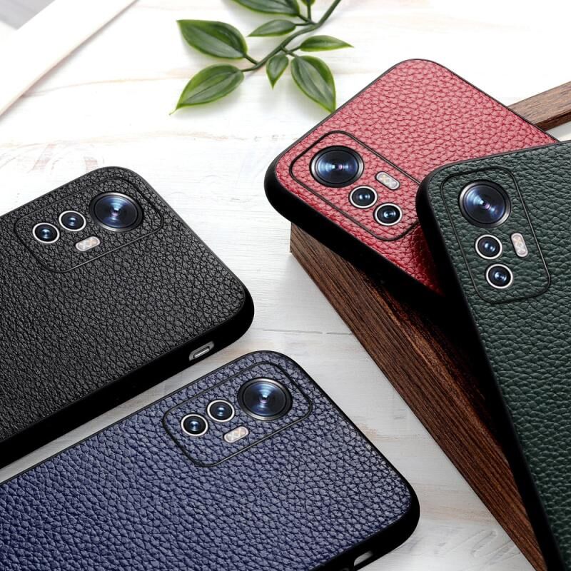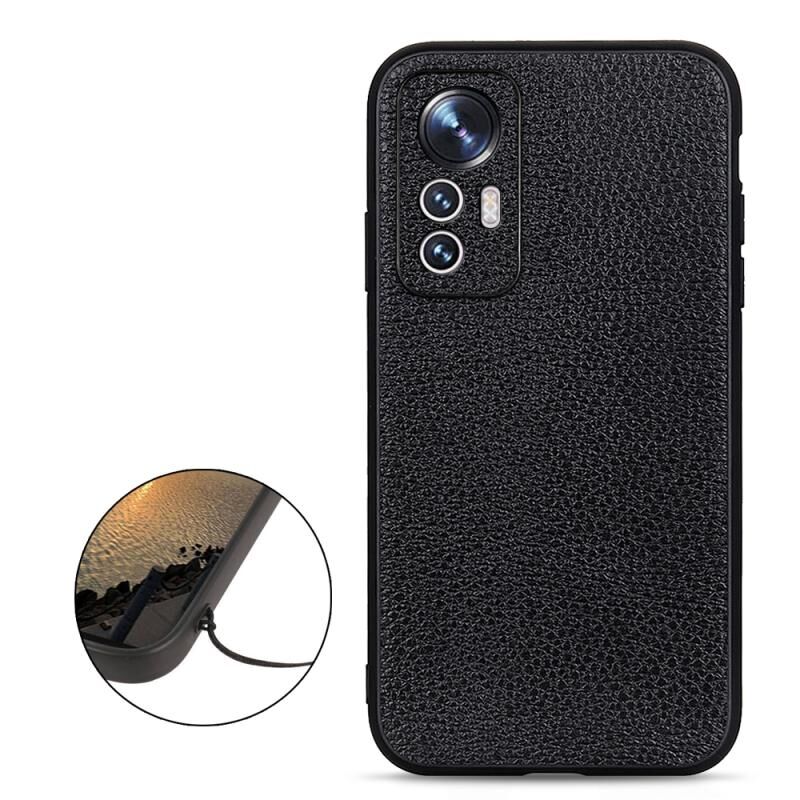 Θήκη τηλεφώνου από γνήσιο δέρμα με λεπτή υφή λυτσί για Xiaomi Mi 12 Lite (Μαύρο)
