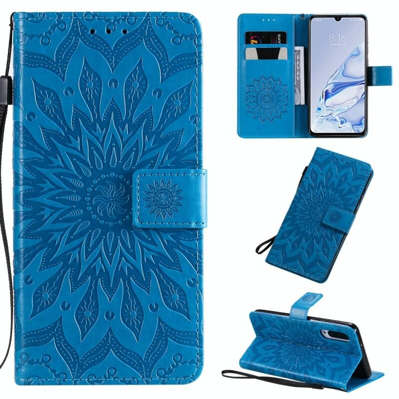 Θήκη για Xiaomi Mi 9 Pro με εκτύπωση ηλιοτροπίου, οριζόντια αναδίπλωση από δερματίνη PU με βάση στήριξης, θήκες για κάρτες, πορτοφόλι & λουρί (Μπλε)