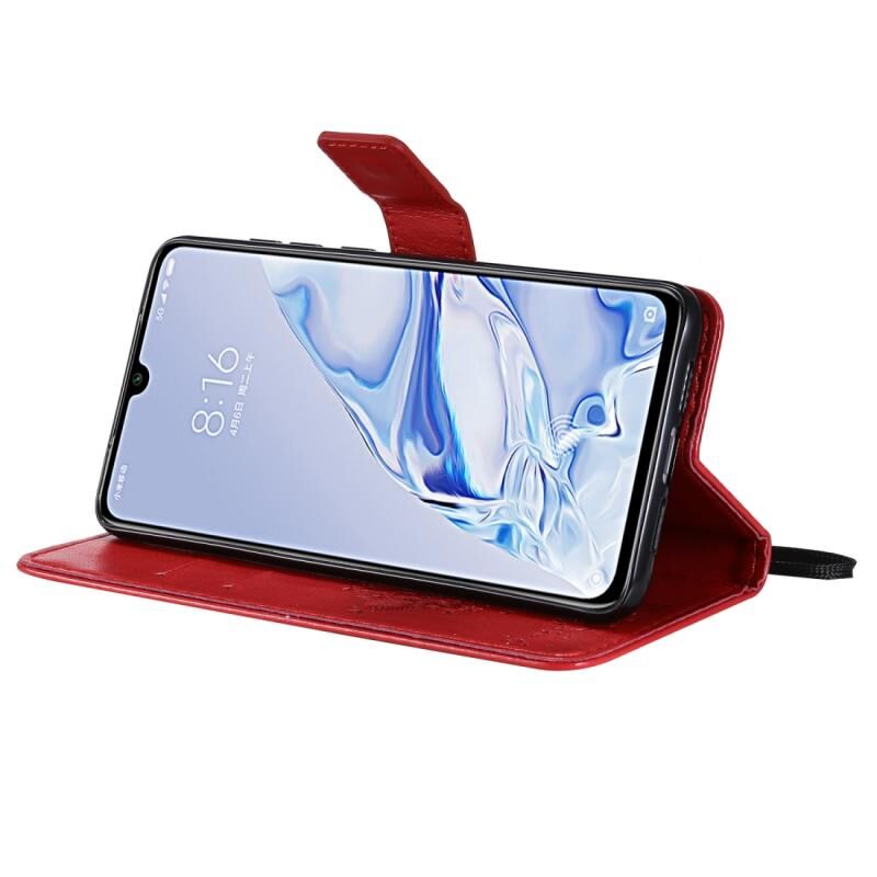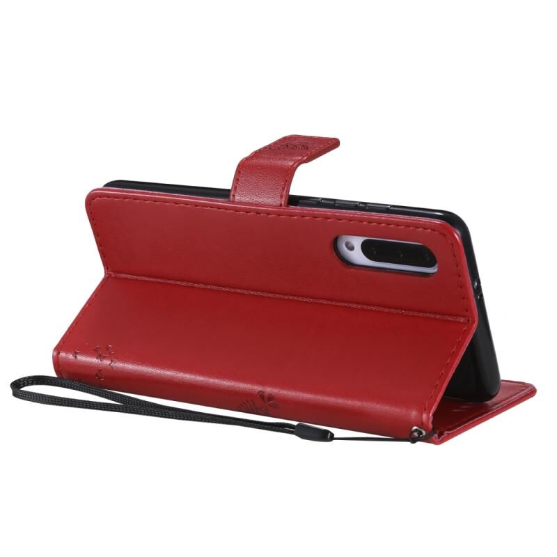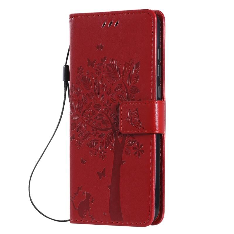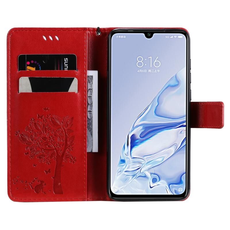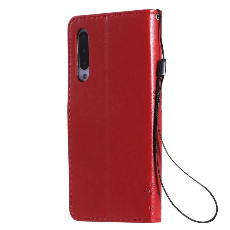 Θήκη για Xiaomi Mi 9 Pro με σχέδιο Δέντρου & Γάτας, εκτύπωση με πίεση, οριζόντια αναδίπλωση, από δερματίνη PU με βάση στήριξης & υποδοχές καρτών & πορτοφόλι & κορδόνι (Κόκκινο)
